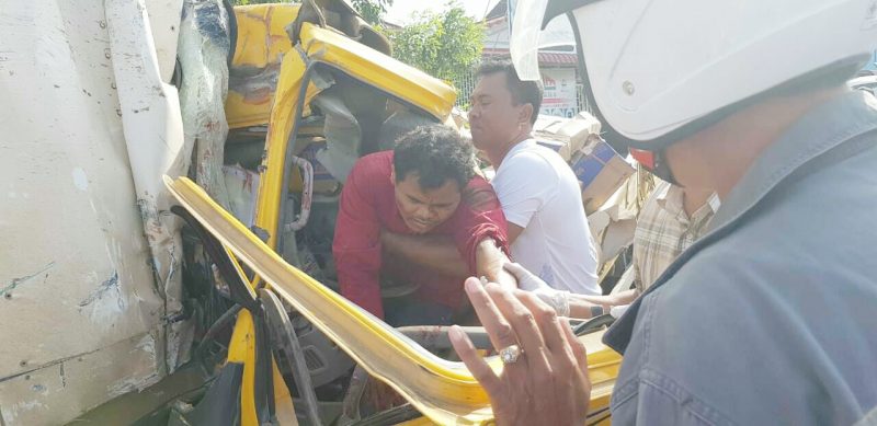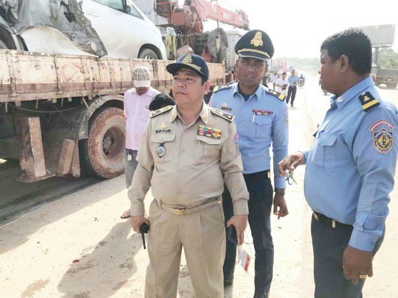 (ព្រះសីហនុ)៖ (ដំណឹងបន្ថែមអំពីគ្រោះថ្នាក់ចរាចរណ៍រថយន្ត៥គ្រឿងបុកបន្តគ្នាកាលពីម៉ោងជាង០៨ព្រឹក ថ្ងៃទី៣០ ខែសីហា ឆ្នាំ២០១៨)។ របាយកាណ៍ពីសមត្ថកិច្ចបញ្ជាក់ថា ហេតុការណ៍កើតឡើង នៅលើវិថីផែ ចំណុចផ្លូវបំបែកP៤ កែងរ៉ារថភ្លើង ស្ថិតក្នុងភូមិ៣ សង្កាត់៣ ក្រុងព្រះសីហនុ កើតឡើងដោយ រថយន្តចំនួន ០១គ្រឿង ម៉ាក MitSuBishi ពណ៌លឿង ពាក់ស្លាកលេខ 3C-2915 (កម្មសិទ្ធិក្រុមហ៊ុន Bright) បើកបរដោយឈ្មោះ សេក សាវុធ ភេទប្រុស អាយុ ៣៤ឆ្នាំ មុខរបរ បើកបរ មានទីលំនៅ ខណ្ឌសែនសុខ រាជធានីភ្នំពេញ មានអ្នករួមដំណើរម្នាក់ ឈ្មោះ ហ៊ង លីដា ភេទប្រុស អាយុ ២៥ឆ្នាំ មុខរបរ ព្រូឡាន មកដល់ចំណុចកើតហេតុបានបុកបន្តគ្នាជាមួយ ១-រថយន្តម៉ាក AlPHARD ពណ៌ស ពាក់ស្លាកលេខ ភ្នំពេញ 2AQ-6886 បើកបរដោយឈ្មោះ គង់ គីមហ៊ុយ ភេទប្រុស អាយុ ៣៧ឆ្នាំ មុខរបរ បើកបរ ទីលំនៅ ភូមិ៣ សង្កាត់៣ ក្រុងព្រះសីហនុ មានទិសដៅស្របគ្នា ។ ២-រថយន្តម៉ាក ToYoTa Highlander ពណ៌ខ្មៅ ពាក់ស្លាកលេខភ្នំពេញ 2M-7631 ជាកម្មសិទ្ធិរបស់ឈ្មោះ YANG FAGUI ភេទប្រុស អាយុ ៥៦ឆ្នាំ (ជនជាតិចិន) កាន់លិខិតឆ្លងដែនលេខ5.0267606 ស្នាក់នៅ ភូមិ៣ សង្កាត់៣ ក្រុងព្រះសីហនុ(ចតស្ងៀមនៅមុខផ្ទះ) ។ ៣-រថយន្តម៉ាក Hyundai ពណ៌ស ពាក់ស្លាកលេខ ភ្នំពេញ 3E-3534 បើកបរដោយឈ្មោះ ស៊យ សុឃឿន ភេទប្រុស អាយុ ៣៧ឆ្នាំ មុខរបរ បើកបរ ទីលំនៅ ភូមិ២ សង្កាត់២ ក្រុងព្រះសីហនុ (ចតស្ងៀមដាក់ទំនិញមុខផ្ទះ)មានអ្នករួមដំណើរ ម្នាក់ឈ្មោះ Liang Cheng Kang ភេទប្រុស អាយុ ២៨ឆ្នាំ (ជនជាតិចិន) កាន់លិខិតឆ្លងដែនលេខE07959781 ស្នាក់នៅ ភូមិ៣ សង្កាត់៤ ក្រុងព្រះសីហនុ ។ ៤-រថយន្តដឹកស្រាបៀរម៉ាក Hyundai ពណ៌ក្រហម ពាក់ស្លាកលេខភ្នំពេញ 3B-9503 បើកបរដោយឈ្មោះ យាន សុងហេង ភេទប្រុស អាយុ ៣៦ឆ្នាំ មុខរបរ បើកបរ ទីលំនៅ ភូមិ២ សង្កាត់១ ក្រុងព្រះសីហនុ (ទិសដៅស្របគ្នា)។ ៥-ម៉ូតូម៉ាក Honda C-125 ពណ៌ខ្មៅ ពាក់ស្លាកលេខ ព្រះសីហនុ 1D-4069 ជាកម្មសិទ្ធិរបស់ឈ្មោះ ប៉េង សុង ភេទប្រុស អាយុ ៥៤ឆ្នាំ មុខរបរ នគរបាលចរាចរណ៍ (កំពុងឈរយាមនៅប៉ុស្តិ៍P៤ ) ។