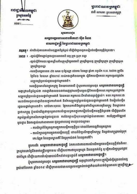 សំណើរបស់សម្ដេចក្រឡាហោម ស ខេង ជូនប្រមុខរាជរដ្ឋាភិបាលកម្ពុជា ត្រូវបានសម្តេចតេជោ ហ៊ុន សែន ឯកភាពនៅថ្ងៃទី២៨ ខែសីហា ឆ្នាំ២០១៨។