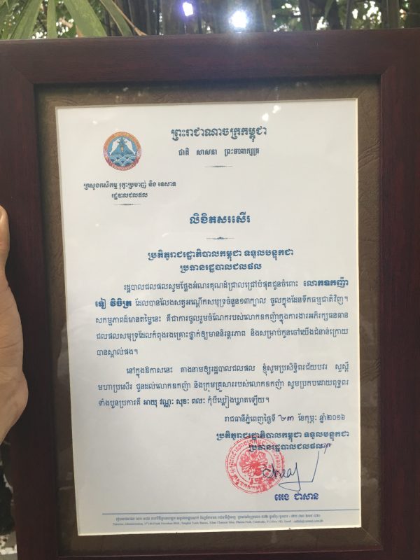 សូមបញ្ជាក់ថា កាលពីដើមឆ្នាំ២០១៦កន្លងមកក្រសួងកសិកម្ម រុក្ខាប្រម៉ាញ់ និងនេសាទ បានផ្តល់លិខិតសសើរ ព្រមទាំងបានថ្លែងអំណរគុណចំពោះលោកឧកញ៉ា ទៀ វិចិត្រ ដែលបានលែងសត្វអណ្តើកសមុទ្រចូលក្នុងដែនទឹកធម្មជាតិវិញផងដែរ ៕