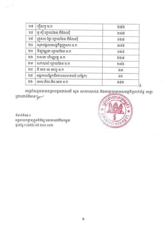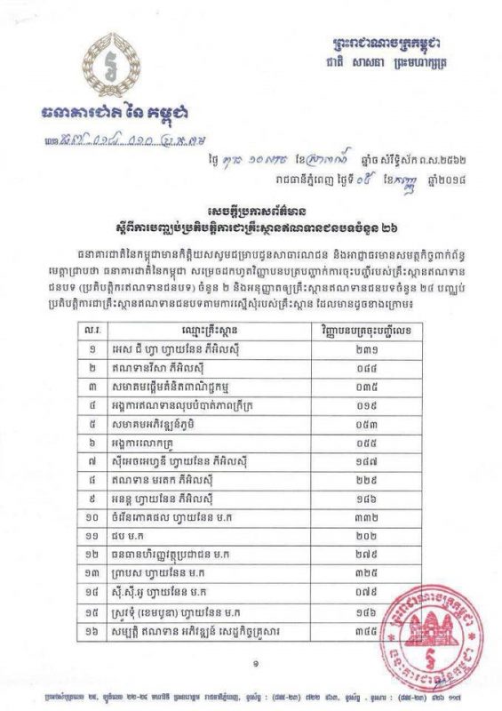 ធនាគារជាតិនៃកម្ពុជាចេញប្រកាសព័ត៌មានបញ្ឈប់ប្រតិបត្តិការជាគ្រឹះស្ថានឥណទានជនបទចំនួន២៦