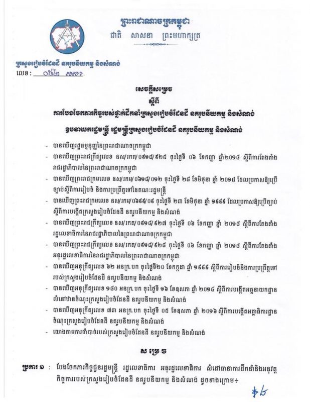 សូមអានសេចក្តីសម្រេចរបស់ក្រសួងរៀបចំដែនដី នគរូបនីយកម្ម និងសំណង់ទាំងស្រុង៖