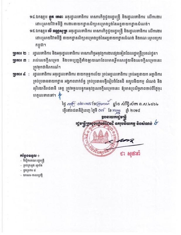 នេះបើតាមសេចក្តីសម្រេចរបស់ លោក ជា សុផារ៉ា ដែលបណ្តាញព័ត៌មាន Kamnottra ទើបទទួលបាននៅព្រឹកថ្ងៃទី១២ ខែកញ្ញានេះ ៕