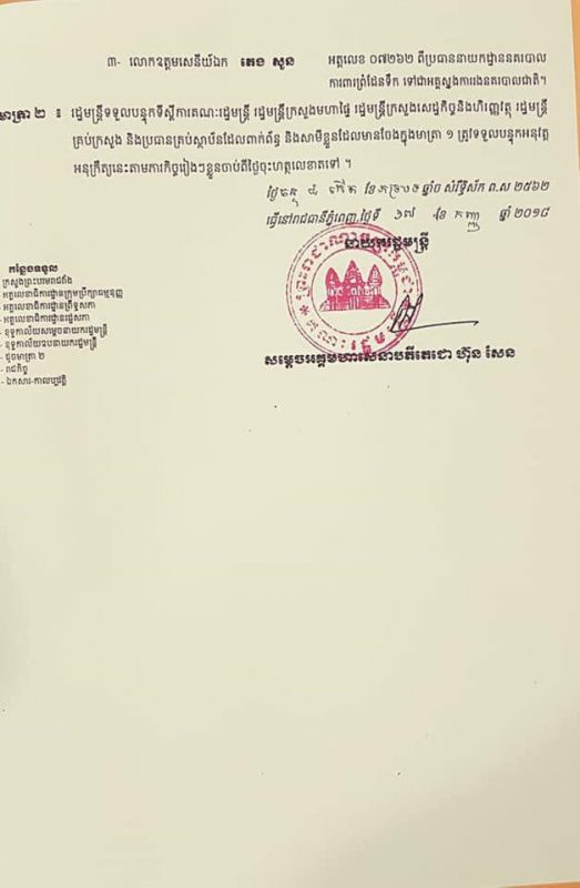 សូមអានអនុក្រឹត្យរបស់សម្តេចតេជោ ខាងក្រោម៖