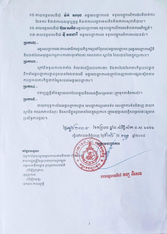 សូមអានសេចក្តីសម្រេចរបស់នាយឧត្តមសេនីយ៍ វង្ស ពិសេន ដូចខាងក្រោម៖