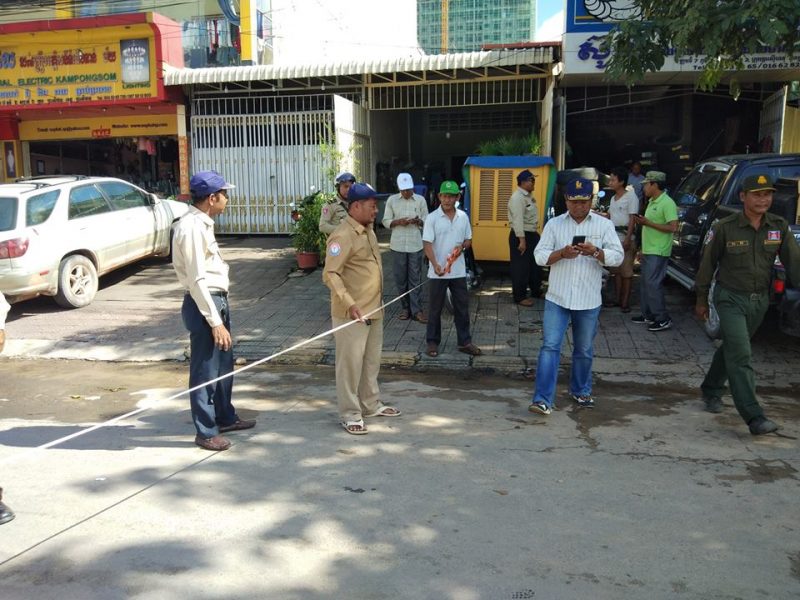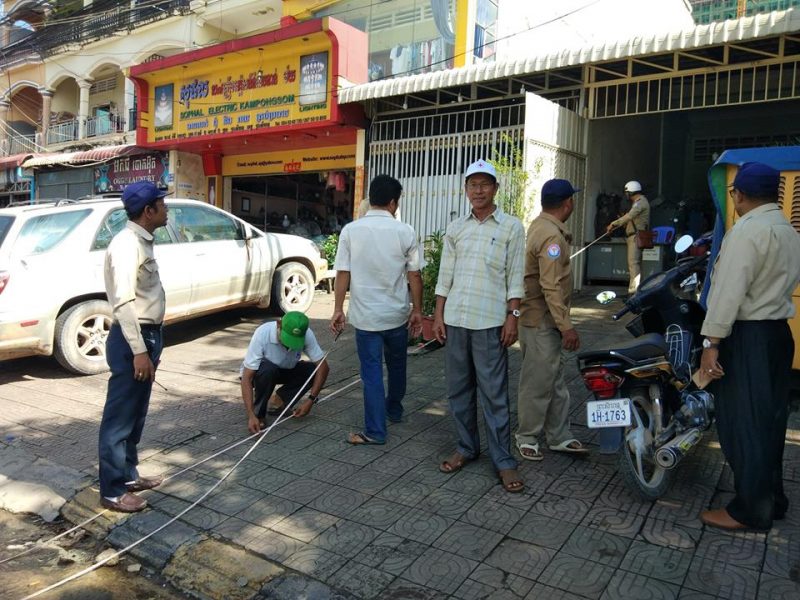 (ព្រះសីហនុ)- ព្រឹក និងរសៀល ថ្ងៃទី២៦ ខែកញ្ញា ឆ្នាំ២០១៨ ក្រុមការងារចម្រុះរដ្ឋបាលក្រុងដឹកនាំដោយលោក សន កុសល អភិបាលរងក្រុងព្រះសីហនុ សហការជាមួយសង្កាត់លេខ២ សង្កាត់លេខ៤ និងមន្ទីរសាធារណការ និងដឹកជញ្ជូនខេត្ត បានចុះវាស់វែងបាញ់ថ្នាំកំណត់ពីអ័ក្សផ្លូវ ២០ម៉ែត្រ ដើម្បីហាមមិនអោយបងប្អូនដាក់សម្ភារៈ ចតម៉ូតូ ឡាន(ឥតសណ្តាប់ធ្នាប់) លើដីចំណីផ្លូវសាធារណៈ តាមបណ្តោយផ្លូវឯករាជ្យចាប់ពីស្តុបធនាគារកាណាឌីយ៉ាដល់ស្តុបផ្សារពាណិជ្ជកម្ម និងចាប់ពីមុខមន្ទីរសុខាភិបាលខេត្ត ដល់ស្តុបផ្សារអូរេន ស្ថិតនៅសង្កាត់លេខ២ និងសង្កាត់លេខ៤ ក្រុងព្រះសីហនុ ខេត្តព្រះសីហនុ ។