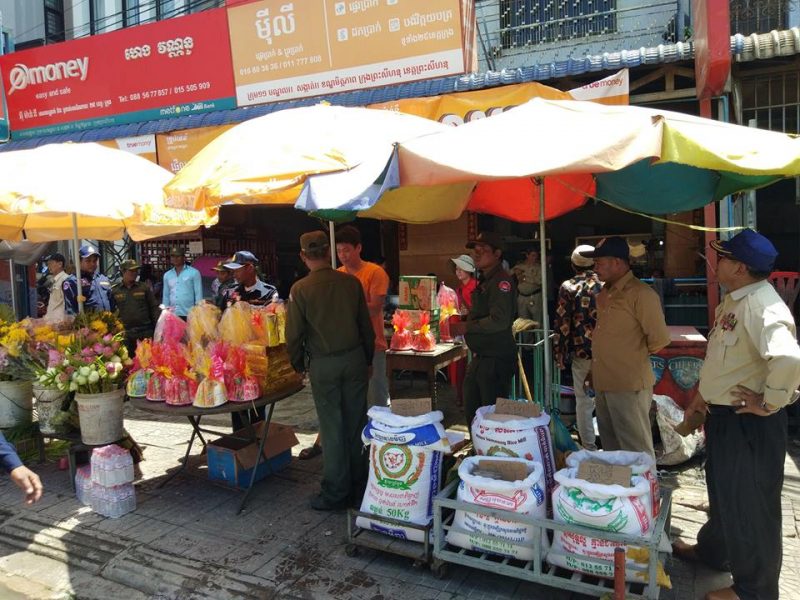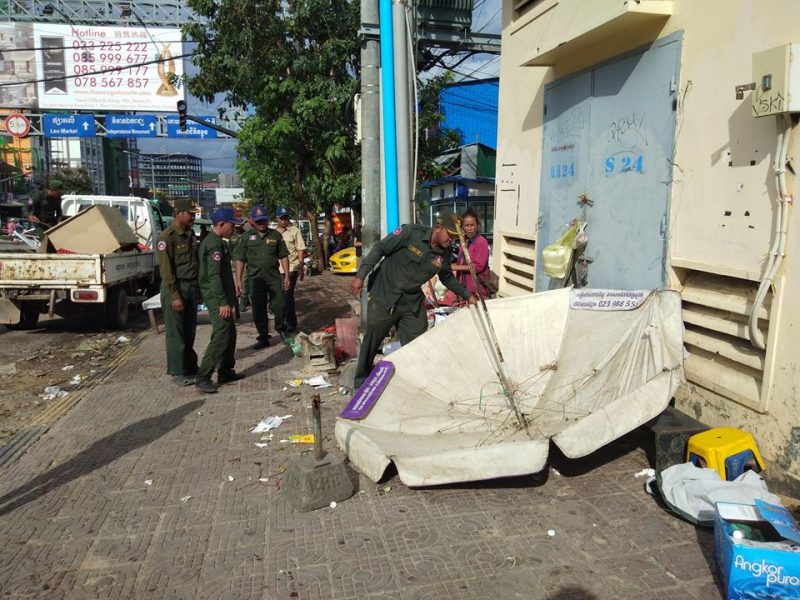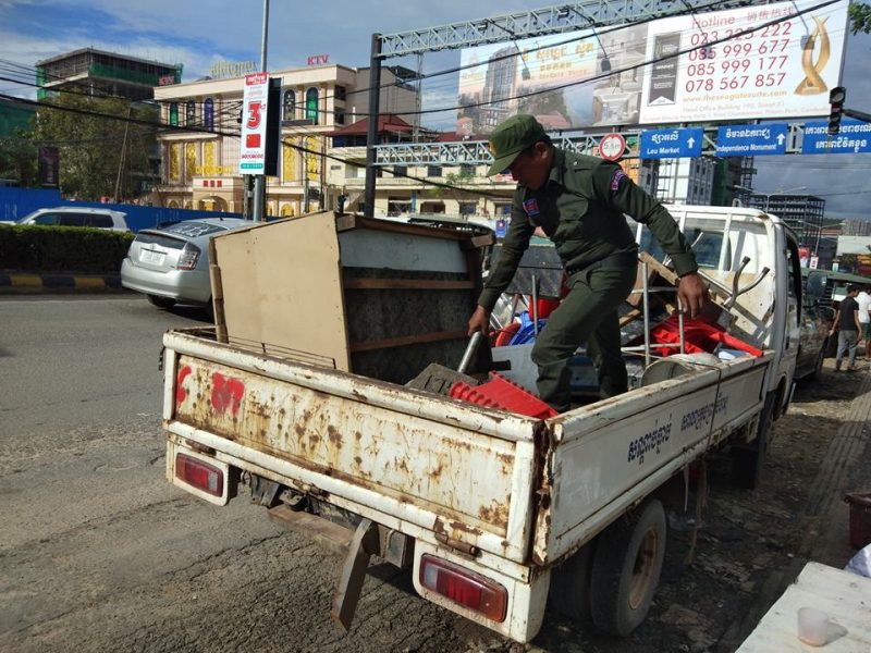 ក្នុងនោះ ក្រុមការងារបានលើកយកសម្ភារៈមានតុ កៅអី ដងឆ័ត្រ ជើងឆ័ត្រ ទូ ធុងជ័រ… ចំនួន ១ឡាន យកទៅសាលាក្រុងដោយមិនប្រគល់អោយវិញទេ។ ក្រៅពីនោះ កំណត់រយៈពេល ០៣ថ្ងៃ ត្រូវរើរុះ និងយកចេញពីលើដីចំណីផ្លូវសាធារណៈ ។