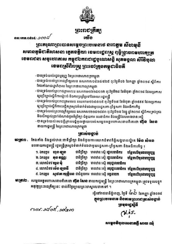 សូមអានព្រះរាជក្រឹត្យតែងតាំងដូចមានរាយនាមខាងក្រោម៖