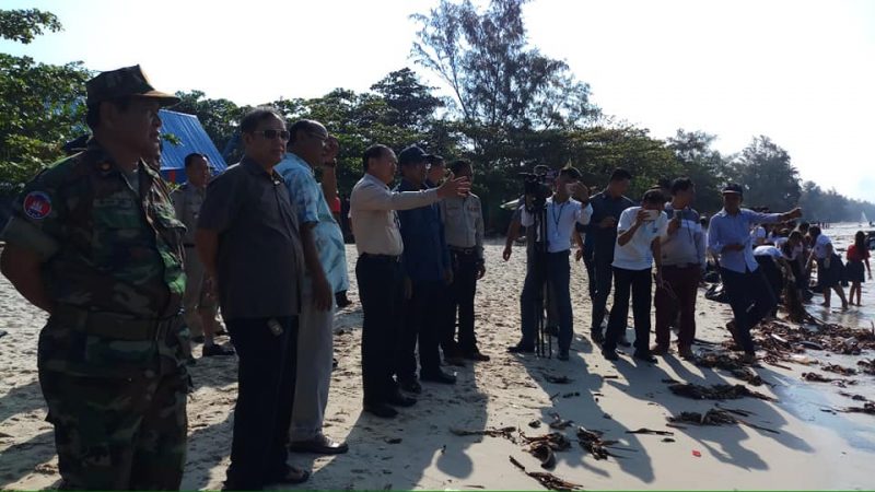 (ព្រះសីហនុ)៖ នៅព្រឹកថ្ងៃទី១១ ខែតុលា ឆ្នាំ២០១៨នេះ លោក ប៉ុល សារឿន ទេសរដ្ឋមន្ត្រី ទទួលបន្ទុកបេសកកម្មពិសេស និងជាប្រធានក្រុមការងារថ្នាក់ជាតិចុះជួយខេត្តព្រះសីហនុចុះពិនិត្យបានអញ្ជើញចុះពិនិត្យដោយផ្ទាល់ករណីកំប្លោកអណ្តែតមកឆ្នេរខេត្តព្រះសីហនុ រួមជាមួយថ្នាក់ដឹកនាំខេត្តនិងបណ្តាប្រធានស្ថាប័នអង្គភាពចំណុះខេត្តព្រះសីហនុជាច្រើនរូបទៀត ។