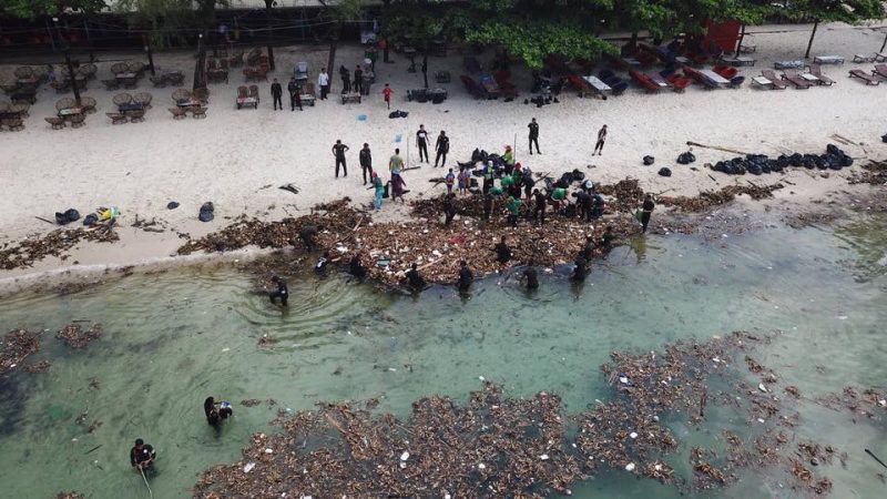 នៅព្រឹកថ្ងៃដដែលនេះដែររដ្ឋបាលខេត្ត ក្រុងព្រះសីហនុ បានចលនាកងកម្លាំងគ្រប់ប្រភេទ រួមនិងមន្ត្រីរាជការ សិស្សានុសិស្ស បុគ្គលិកក្រុមហ៊ុនប្រមូលសំរាម បាននាំគ្នាប្រមូលកំប្លោកចេញពីផ្ទៃទឹកសមុទ្របានប្រមាណ៧០%ហើយនេះបើតាមការបញ្ជាក់របស់លោក អ៊ី សុខឡេង អភិបាលក្រុងព្រះសីហនុ ហើយសកម្មភាពនេះនឹងធ្វើបន្តទៀតរហូតទាល់តែអស់ ៕