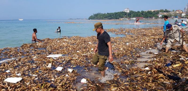 បើតាមរដ្ឋបាលខេត្តព្រះសីហនុនៅព្រឹកថ្ងៃទី១១ ខែតុលា ឆ្នាំ២០១៨នេះបានចេញលិខិតប្រកាសថា កំប្លោកដែលមានប្រភពពីប្រទេសជិតខាង ហូរអណ្តែតរសាត់មកទើលើឆ្នេរសមុទ្រក្នុងខេត្តព្រះសីហនុមិនបានធ្វើអោយខូចគុណភាពទឹកសមុទ្រ ឬឆ្នេរខ្សាច់នោះទេ គ្រាន់តែធ្វើឲ្យបាត់បង់សោភ័ណភាពឆ្នេរមួយរយៈពេលខ្លីប៉ុណ្ណោះ ក្រោយពីការសម្អាតរួចរាល់ឆ្នេរខ្សាច់នឹងមកសភាពស្រស់ស្អាតដូចដើមវិញ ។