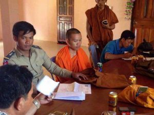 ខេត្តកែប: បុរសម្នាក់បានបន្លំខ្លួនជាព្រះសង្ឃ រួមជាមួយបក្ខពួក ដើរបិណ្ឌបាត្រតាមបណ្ដាខេត្តនានាដើម្បីយកលុយទិញថ្នាំញៀន ប៉ុន្ដែមកត្រូវអស់លក្ខណ៍នៅខេត្តកែប ក្រោយកើតរឿងគ្រោះថ្នាក់ចរាចរ ហើយត្រូវកម្លាំងនគរបាលឃាត់ខ្លួនតែម្ដង។លោកឧត្តមសេនីយ៍ទោ អ៊ីង សំអុល ស្នងការនគរបាលខេត្តកែប នៅព្រឹកថ្ងៃទី២៩ ខែមិថុនា ឆ្នាំ២០១៧នេះបានប្រាប់ថា នៅថ្ងៃទី២៨ ខែមិថុនាម្សិលមិញ មានករណីគ្រោះថ្នាក់ចរាចរមួយកើតឡើង នៅផ្លូវជាតិលេខ៣៣អា មុខសាលាខេត្តកែប រវាងរថយន្ត Camry ពណ៌ទឹកប្រាក់ ផ្លាកលេខបន្ទាយមានជ័យលេខ2A-5141 ប៉ះអ្នកជិះម៉ូតូC125 បណ្តាលឲ្យមនុស្សរងរបួសស្រាលម្នាក់ ហើយម្ចាស់រថយន្តបានបើកគេច ប៉ុន្ដែត្រូវកម្លាំងនគរបាលក្រុងកែប ស្នាក់ចាប់បាននៅផ្សារដំណាក់ចង្អើរ ចំងាយប្រមាណជាង10គីឡូម៉ែត្រ ពីកន្លែងកើតហេតុណ៍។ក្រោយកម្លាំងជំនាញស្ទាក់ចាប់បានរថយន្ដ ក៏ឃាត់បានមនុស្ស២នាក់ ដោយក្នុងនោះម្នាក់ជាព្រះសង្ឃ ដែលអ្នកបើកបររថយន្តឈ្មោះ គិន ភក្តី អាយុ២៦ឆ្នាំ និងឈ្មោះ ម៉ី ងួន អាយុ២៦ឆ្នាំ ជាព្រះសង្ឃក្លែងក្លាយ។ប្រភពពីសមត្ថកិច្ចបានប្រាប់ដឹងថាតាមការសាកសួរបឋមឈ្មោះ ម៉ី ងួន បានឆ្លើយថា រូបគេបន្លំខ្លួនធ្វើជាសង្ឃដើរបិណ្ឌបាត្រយកលុយ ទិញគ្រឿងញៀនជក់តាំងពីដើមខែមិថុនា ឆ្នាំ២០១៧ ដែលចាប់ផ្តើមធ្វើសកម្មភាព នៅខេត្តបន្តាយមានជ័យ, បាត់ដំបង, សៀមរាប, កំពង់ធំ, កំពង់ឆ្នាំង, ភ្នំពេញ, កំពង់ស្ពឺ, ព្រះសីហនុ, កំពត, កែប ក្នុងរយៈពេល១៥ថ្ងៃ បានប្រាក់ចំនួន ៥,០៩០,០០០រៀល។លោកស្នងការបន្ថែមថា តាមចម្លើយសារភាព នៅខេត្តកែបរយៈពេលមួយព្រឹក គេដើរបិណ្ឌបាត្របានប្រាក់ ២៦០,០០០រៀល ហើយក៏ត្រូវឃាត់ខ្លួនតែម្ដង។ ក្នុងនោះបក្ខពួកគេមានគ្នា៤នាក់ មកខេត្តកែប២នាក់ និងចុះធ្វើសកម្មភាពនៅទីរួមខេត្តកំពត២នាក់។ក្រោយការឃាត់ខ្លួន កម្លាំងនគរបាលបានស្នើសុំមន្ទីរធម្មការ និងព្រះអនុគណក្រុងកែប ធ្វើការផ្សឹកតាមបែបបទព្រះពុទ្ធសាសនា រួចប្រគល់ឲ្យនគរបាលក្រុងកែប ពិនិត្យឃើញថាពួកគេមានសារធាតុញៀនក្នុងខ្លួន ហើយបានកសាងសំណុំរឿងដើម្បីចាត់ការបន្តនីតិវិធី៕