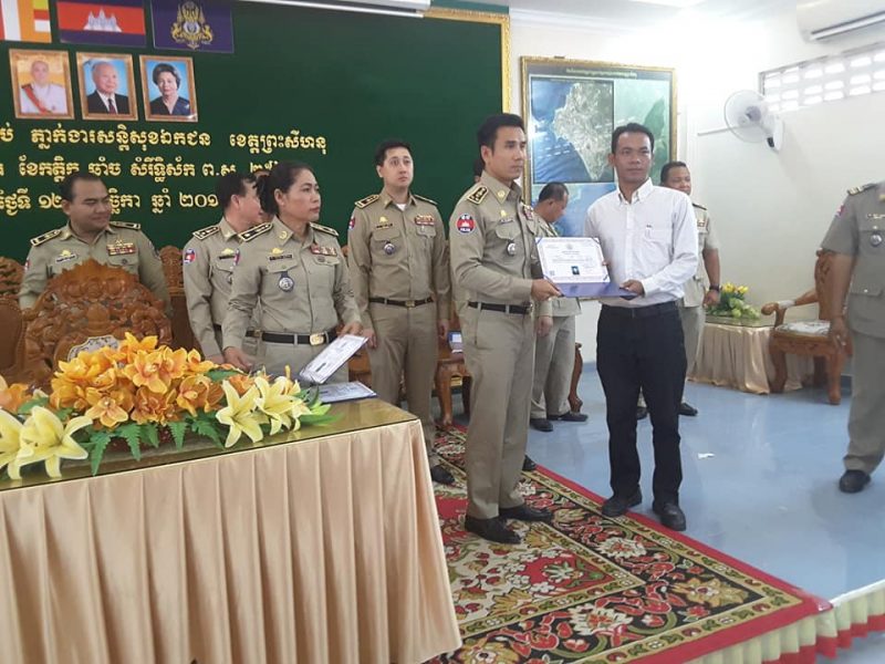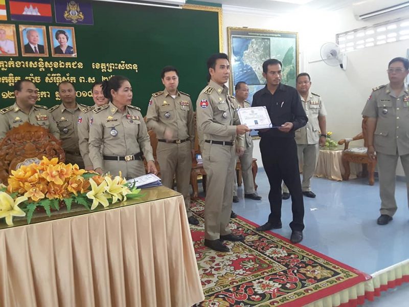 (ព្រះសីហនុ)៖ នៅរសៀលថ្ងៃទី១២ ខែវិច្ឆិកា ឆ្នាំ២០១៨ នេះលោកឧត្តមសេនីយ៍ឯក ឌី វិជ្ជា អគ្គស្នងការរងនគរបាលជាតិ និងជាប្រធាននាយកដ្ឋានកណ្តាលសន្តិសុខ បានអញ្ជើញជាអធិបតីក្នុងពិធីបិទវគ្គបំប៉ន ជំនាញច្បាប់ភ្នាក់ងារសន្តិសុខឯកជន និងប្រគល់វិញ្ញាបនបត្របញ្ជាក់ការសិក្សាជូនភ្នាក់ងារសន្តិសុខឯកជនចំនួន១៥៤នាក់ មកពី៣០សហគ្រាស ក្នុងខេត្តព្រះសីហនុ ។