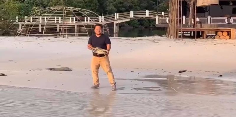 លោកឧកញ៉ា ទៀ វិចិត្រ ថ្លែងថា ការព្រលែងសត្វអណ្តើកសមុទ្រលើកនេះ គឺជាលើកទី១០០ហើយ ហើយក៏ជាផ្នែកមួយនៃការចូលរួមជួយការពារអភិរក្សសត្វសមុទ្រកម្រផងដែរ ។