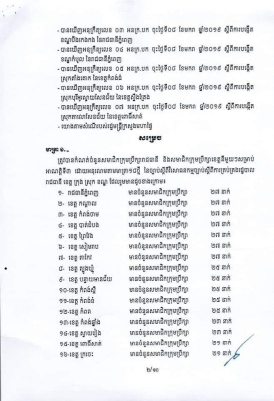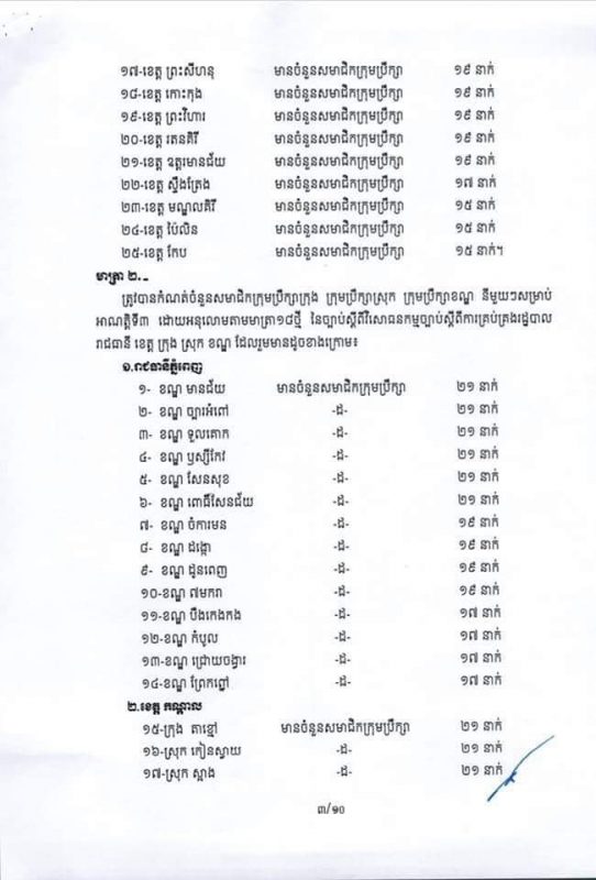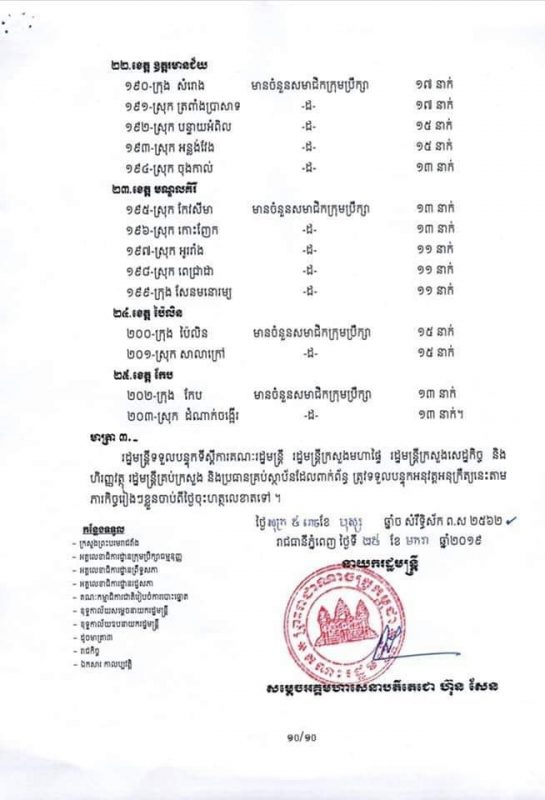 (ភ្នំពេញ)៖ សម្តេចតេជោ ហ៊ុន សែន នាយករដ្ឋមន្ត្រីនៃកម្ពុជា នៅថ្ងៃទី២៥ ខែមករា ឆ្នាំ២០១៩នេះ បានចេញអនុក្រឹត្យកំណត់ចំនួន សមាជិកក្រុមប្រឹក្សារាជធានីភ្នំពេញ ខេត្ត ក្រុង ស្រុក ខណ្ឌ សម្រាប់អាណត្តិទី៣ ។