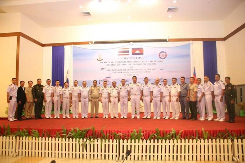 (ព្រះសីហនុ)៖ លោកឧត្តមនាវីឯក ទៀ សុខា មេបញ្ជាការរងកងទ័ពជើងទឹក និងជាមេបញ្ជាការ ទីបញ្ជាការជួរមុខ អគ្គលេខាធិការដ្ឋាន នៃគណៈកម្មាធិការជាតិសន្តិសុខលម្ហសមុទ្រ បានជួបប្រជុំគ្នាលើកទី១០ ជាមួយលោកឧត្តមនាវីឯក បាន់ចុប ភូដែង (BANJOB POEDAENG) មេបញ្ជាការយោធភូមិភាគទី១ នៃកងទ័ពជើងទឹកភូមិន្ទថៃ នារសៀលថ្ងៃអង្គារ ១៥កើត ខែមាឃ ឆ្នាំច សំរឹទ្ធិស័ក ព.ស២៥៦២ ត្រូវនឹងថ្ងៃទី ១៩ ខែកុម្ភៈ គ.ស២០១៩ នៅ សណ្ឋាគារឯករាជ្យ ស្ថិតក្នុងក្រុងព្រះសីហនុ ដើម្បីបន្ដកិច្ចសហប្រតិបត្ដិការល្អក្នុងការផ្ដល់ព័ត៌មានគ្នាទៅវិញទៅមក សម្រាប់ការអនុវត្ដច្បាប់ ទប់ស្កាត់បទល្មើស ការងារអភិរក្ស និងការការជួយសង្គ្រោះលើផ្ទៃសមុទ្រ ។