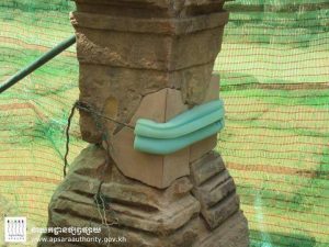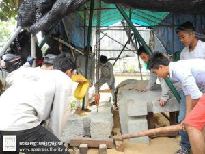 ក្រុមអភិរក្សថ្មវ័យក្មេងប្រមាណ២០រូប ដែលធ្លាប់ទទួលការបណ្តុះបណ្តាលដោយអ្នកជំនាញនៃប្រទេសអាឡឺម៉ង់ និងដែលដឹកនាំអនុវត្តការងារផ្ទាល់ដោយលោក ឡុង ណារី មន្ត្រីបច្ចេកទេសនៃនាយកដ្ឋានអភិរក្សប្រាសាទក្នុងឧទ្យានអង្គរ និងបុរាណវិទ្យាបង្ការនៃអាជ្ញាធរជាតិអប្សរា កំពុងបន្តការងារជួសជុលថ្ម និងចម្លាក់ផ្សេងៗក្នុងតំបន់អង្គរ។ក្រុមអភិរក្សថ្មវ័យក្មេងទាំងនេះបានចែកគ្នាជាក្រុមៗ ដើម្បីធ្វើការជួសជុលព្យាបាលថ្ម ឬចម្លាក់ផ្សេងៗ ដែលរងការខូចខាតដើម្បីឲ្យរឹងមាំឡើងវិញ។ ជាក់ស្តែង ក្រុមការងារនេះបានជួសជុលបង្កាន់ដៃនាគនៅប្រាសាទបន្ទាយសំរែជួសជុលចម្លាក់តោនៅប្រាសាទក្រវ៉ាន់ជួសជុលសសរពេជ្រនិងផ្តែរនៅសារមន្ទីរព្រះនរោត្តមសីហនុអង្គរនិងកំពុងបន្តការងារជួសជុលបង្គោលសីមានៅប្រាសាទបន្ទាយស្រី។ក្រុមអភិរក្សថ្មវ័យក្មេង៣នាក់ដែលកំពុងតែជួសជុលបង្គោលសីមានៅប្រាសាទបន្ទាយស្រី លោក ស៊ុយ ប៊ុនថន លោក អៀន ធី និងលោក មឿត ដា។ លោកបានរៀបរាប់ថាបង្គោលសីមាដែលក្រុមការងាររបស់លោកកំពុងជួសជុលនេះមានបញ្ហាដោយសារការជួសជុលកាលពីសម័យបារាំងគេបានដាក់ស៊ីម៉ង់ត៍ និងដាក់ដែកទាមពីខាងក្រៅ តែពេលនេះវាបានរង្គើរបេះស៊ីម៉ង់ត៍ធ្លាក់ហើយអាចនឹងរលំដួលឬធ្លាក់បាក់បើមានភ្ញៀវមកប៉ះពាល់ខ្លាំងបន្តិច។ការជួសជុលរបស់ក្រុមការងារលោកគឺដកស៊ីម៉ង់ត៍និងដែកទាមចេញដាក់ជំនួសវិញដោយស្នូលភ្ជាប់ប្រភេទ Fiberglass និងដាក់ថ្មថ្មីជំនួសស៊ីម៉ង់ត៍ចាស់។ បច្ចុប្បន្នក្រុមការងារលោកកំពុងជួសជុលបង្គោលសីមាចំនួន៣ដើមនិងសសរមួយដើមនៅប្រាសាទបន្ទាយស្រីនេះ។នេះជាមោទនភាពមួយដែលធនធានមនុស្សនៃអាជ្ញាធរជាតិអប្សរាមានសមត្ថភាពអាចកាន់ការងារជួសជុលថ្មប្រាសាទដូនតាខ្មែរបានដោយខ្លួនឯងដែលជាគោលដៅធំបំផុតនៃបេសកកម្មរបស់អាជ្ញាធរជាតិអប្សរាក្នុងកិច្ចការគ្រប់គ្រងដោយឈរលើទស្សនៈថាប្រាសាទខ្មែរធ្វើដោយកូនខ្មែរនិងដើម្បីកូនខ្មែរ។តាមរយៈការសិក្សារៀនសូត្រពីអ្នកជំនាញនិងការអនុវត្តផ្ទាល់លើការងារប្រចាំថ្ងៃអ្នកជំនាញវ័យក្មេងទាំងនេះនឹងកាន់តែមានសមត្ថភាពល្អប្រសើរឡើងពីមួយថ្ងៃទៅមួយថ្ងៃហើយអនាគតពួកគេនឹងអាចបន្តជំនាញទាំងនេះដល់អ្នកជំនាន់ក្រោយៗទៀតដែលធ្វើឲ្យកិច្ចការអភិរក្សមរតកដូនតាមាននិរន្តរភាពបាន៕