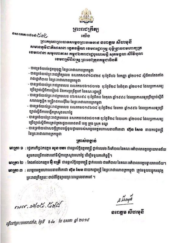 ខាងក្រោមនេះជាព្រះរាជក្រឹត្យព្រះមហាក្សត្រ៖