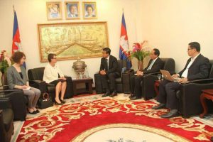 ក្នុងពេលអញ្ជើញជួបសំណេះសំណាលការងារជាមួយលោក ប៉ាន សូរស័ក្តិ រដ្ឋមន្រ្តីក្រសួងពាណិជ្ជកម្ម នៅថ្ងៃទី២៩ ខែមិថុនា ឆ្នាំ២០១៧ ឯកអគ្គរដ្ឋទូតអូស្ត្រាលីប្រចាំនៅកម្ពុជា លោកស្រី អែនជែលឡា ខកខូរិន (Angela Corcoran) បានថ្លែងថា ប្រទេសអូស្ត្រាលី មានការតាំងចិត្តខ្ពស់ក្នុងការពង្រឹងទំនាក់ទំនងពាណិជ្ជកម្ម និងវិនិយោគជាមួយកម្ពុជា។ លោកស្រីឯកអគ្គរដ្ឋទូត បានបន្តថា ដើម្បីពង្រឹងទំនាក់ទំនងពាណិជ្ជកម្ម និងវិនិយោគ នៅពេលថ្មីៗនេះ លោកស្រី បានជួបពិភាក្សាជាមួយក្រសួងការបរទេស និងសហប្រតិបត្តិការអន្តរជាតិ ក្នុងការរៀបចំកិច្ចប្រជុំមន្ត្រីជាន់ខ្ពស់មួយស្ដីពីពាណិជ្ជកម្ម និងវិនិយោគ ដើម្បីបន្តពង្រឹងកិច្ចសហប្រតិបត្តិការរវាងកម្ពុជា និងអូស្ត្រាលី។លោកស្រី ឯកអគ្គរដ្ឋទូតអូស្ត្រាលី បានឲ្យដឹងទៀតថា ព្រឹត្តិការណ៍ទី២គឺកិច្ចប្រជុំកំពូលលើកទីមួយ អាស៊ាន-អូស្ត្រាលី ដែលនឹងប្រព្រឹត្តទៅនៅទីក្រុងស៊ីដនី ក្នុងឆ្នាំ២០១៨។ កិច្ចប្រជុំនេះនឹងមានការចូលរួមពីលោកនាយករដ្ឋមន្ត្រី ហ៊ុន សែនផងដែរ។រដ្ឋមន្រ្តីក្រសួងពាណិជ្ជកម្ម ក៏បានថ្លែងអំណរអរគុណចំពោះការអញ្ជើញរបស់លោកស្រី ហើយបានថ្លែងថា ព្រឹត្តិការណ៍ទាំងនោះ មានសារៈសំខាន់សម្រាប់ប្រទេសទាំងពីរ ជាពិសេសដើម្បីពង្រឹងកិច្ចសហប្រតិបត្តិការរវាងកម្ពុជា និងអូស្ត្រាលី។ ម្យ៉ាងវិញទៀត ជាឱកាសមួយដើម្បីឲ្យវិស័យឯកជនរបស់ប្រទេសទាំងពីរបានជួបគ្នា និងសហការជាមួយគ្នា៕