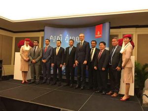 នៅថ្ងៃទី០៣ ខែកក្កដា ឆ្នាំ២០១៧នេះ លោក ម៉ៅ ហាវណ្ណាល់ រដ្ឋលេខាធិការ នៃរដ្ឋលេខាធិការដ្ឋានអាកាសចរស៊ីវិល បានថ្លែងនូវការស្វាគមន៍ និងអបអរសាទរចំពោះ ការសម្ពោធជើងហោះថ្មី របស់ក្រុមហ៊ុនអាកាសចរណ៍ លំដាប់ពិភពលោក Emirate Airlines ដែលសម្រេចចិត្តហោះហើរមកកាន់កម្ពុជា។លោក ម៉ៅ ហាវណ្ណាល់ បានឲ្យដឹងថា ការហោះហើរត្រង់មកកម្ពុជា គឺក្នុងគោលបំណងដឹកជញ្ចូន អ្នកដំណើរតាមផ្លូវអាកាស នឹងរួមចំណែកបង្កើននូវចំនួន ភ្ញៀវទេសចរណ៍មកទស្សនាកម្ពុជា បង្កើនចំនួនការងារធ្វើ និងជំរុញនូវកំណើនសេដ្ឋកិច្ចជាតិផងដែរ។លោកបានចាត់ទុកការហោះហើរត្រង់របស់ Emirate កម្ពុជានេះ ជាសក្ខីភាពដ៏ច្បាស់លាស់ នូវការដឹកនាំដ៏ត្រឹមត្រូវរបស់លោកនាយករដ្ឋមន្ត្រី ហ៊ុន សែន ដែលធ្វើការដឹកនាំប្រទេស មិនគ្រាន់តែមានសន្តិភាពទេ គឺថែមទាំងមានការអភិវឌ្ឍ ប្រទេសគ្រប់វិស័យទៀតផង។ បើតាមការបញ្ជាក់របស់ លោក ស៊ីន ចាន់សិរីវុត្ថា អ្នកនាំពាក្យរដ្ឋលេខាធិការដ្ឋាន អាកាសចរស៊ីវិល ការមកដល់នៃក្រុមហ៊ុនអាកាសចរណ៍ Emirate គឺជាក្រុមហ៊ុនទី៤៣ ដែលបើកការហោះហើរចេញចូលកម្ពុជា ដោយហោះហើរទៀតទាត់ ៧ជើងក្នុង១សប្តាហ៍ ឬមួយថ្ងៃមួយជើង។អ្នកនាំពាក្យរដ្ឋលេខាធិការដ្ឋាន បានបន្តថា Emirates បានក្លាយជាក្រុមហ៊ុន អាកាសចរណ៍តែមួយគត់ ដែលប្រើយន្តហោះ Boeing 777-300ER ទៀងទាត់ សម្រាប់អ្នកដំណើរឆ្ពោះ មកកាន់រាជធានីភ្នំពេញ ដោយមានថ្នាក់ពីរប្រភេទ គឺសម្រាប់អ្នកដំណើរថ្នាក់ពាណិជ្ជកម្ម (Business Class) និងសម្រាប់អ្នកដំណើរថ្នាក់សន្សំសំចៃ (Economy Class)។លោកបានបន្តទៀតថា សេវាហោះហើរថ្មីនេះ គឺប្រតិបត្តិការជាមួយជើងហោះហើរលេខ EK 388 ដោយចាកចេញពីព្រលានយន្តហោះអន្តរជាតិ ទីក្រុងឌូបៃនៅម៉ោង០៩៖១៥នាទី ម៉ោងក្នុងស្រុក មកដល់យ៉ាំងហ្គូន ប្រទេសមីយ៉ាន់ម៉ា នៅម៉ោង៥៖២៥នាទីល្ងាច។ បន្ទាប់មកវានឹងចេញពីទីក្រុងយ៉ាំងហ្គូន នៅម៉ោង៦៖៥៥នាទីល្ងាច មុនពេលមកដល់ព្រលានយន្តហោះអន្តរជាតិភ្នំពេញ នៅម៉ោង០៩៖២១នាទីយប់។ដោយឡែក ការហោះហើរត្រឡប់មកវិញ តាមជើងហោះហើរលេខ EK389 នឹងចេញដំណើរពីរាជធានីភ្នំពេញ នៅម៉ោង ១១៖១០នាទីយប់ ហើយនឹងទៅដល់ទីក្រុងឌូបៃ នៅម៉ោង០៥៖៤០នាទីព្រឹក នៅថ្ងៃបន្ទាប់ក្រោយពីឈប់មួយភ្លែត នៅទីក្រុងយាំងហ្គូន៕