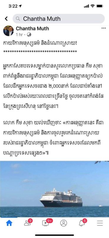 នេះបើតាមការលើកឡើងរបស់លោក មុត ចន្ថា ដែលជាមនុស្សជំនិតរបស់លោក កឹម សុខា នៅលើបណ្តាញហ្វេសប៊ុករបស់លោកមួយម៉ោងមុននេះដែលត្រូវបានសួរដោយអ្នកកាសែតបរទេសម្នាក់ ៕