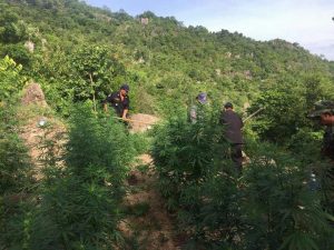ខេត្តតាកែវ ៖ ដំណាំកញ្ឆាប្រមាណជាង១ម៉ឺនដើម ត្រូវបានកម្លាំងនគរបាលស្រុកគីរីវង់ ធ្វើការដុតកម្ទេចចោលប៉ុន្តែប្រជាពលរដ្ឋជញ្ជក់មាត់ខ្សឹបៗថាស្តាយតែទោះជាយ៉ាងណាក៏ដោយក៏គ្មានការលើកលែងនោះដែរព្រោះដំណាំកញ្ឆាជាដំណាំខុសច្បាប់។ករណីនេះត្រូវបានកម្លាំងសមត្ថកិច្ចស្រុកគីរីវង់ ចុះបង្ក្រាបសាជាថ្មី ទៅលើទីតាំងដំណាំកញ្ឆាចាស់ នៅព្រឹកថ្ងៃទី០៣ ខែកក្កដា ឆ្នាំ២០១៧ វេលាម៉ោង៦ និង៤០នាទី ស្ថិតនៅចំណុចដាបែកថ្លាង និងចំណុចក្រឡាញ ភូមិជ្រោយ ឃុំព្រះបាទជាន់ជុំ ស្រុកគីរីវង់ ខេត្តតាកែវ។បើតាមលោកវរសេនីយ៍ទោ យ៉ុគ សារ៉ាត់ អធិការនគរបាលស្រុកគីរីវង់បានឲ្យដឹងថាកម្លាំងរបស់លោកបានចុះបង្ក្រាបជាច្រើនលើកច្រើនសាមកហើយ តែប្រជាពលរដ្ឋនៅតំបន់នោះ នៅតែបន្តលួចលាក់ដាំដំណាំកញ្ឆាដោយខុសច្បាប់ដដែល។ លោកបន្តថា នៅដើមឆ្នាំ ២០១៧ នេះ កម្លាំងរបស់លោកបានចុះបង្ក្រាបដំណាំកញ្ឆាដែលប្រជាពលរដ្ឋលួចដាំដោយខុសច្បាប់នៅចំណុចខាងលើនេះបានចំនួន០៣លើកដែលមានដើមកញ្ឆាចំនួន១៣៤៨៨២ដើមនិងដកហូតកញ្ឆាក្រៀម២៧២គីឡូក្រាមផងដែរនៅលើទីតាំង៣៧៩ទីតាំង។ដោយឡែកនៅថ្ងៃនេះដែរកម្លាំងលោកបានចុះប្រតិបត្តិការបង្ក្រាបនឹងដុតបំផ្លាញចោលនូវដំណាំកញ្ឆាបានចំនួន ១២៨១៣ ដើម នៅនឹងកន្លែង លើ៤២ ទីតាំងបន្ថែមទៀត។លោកបន្តទៀតថាលោកនឹងចាត់វិធានការណ៍បង្ក្រាបឲ្យខាងតែបានលើករណីដំណាំកញ្ឆាដែលខុសច្បាប់ទាំងប៉ុន្មាននៅក្នុងស្រុកគីរីវង់ ។