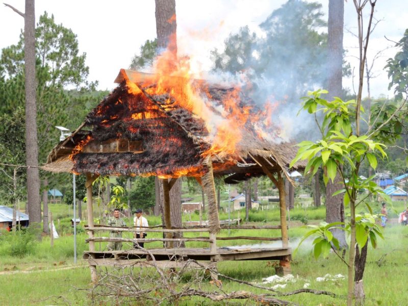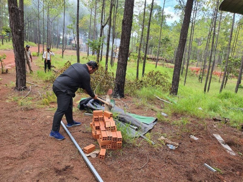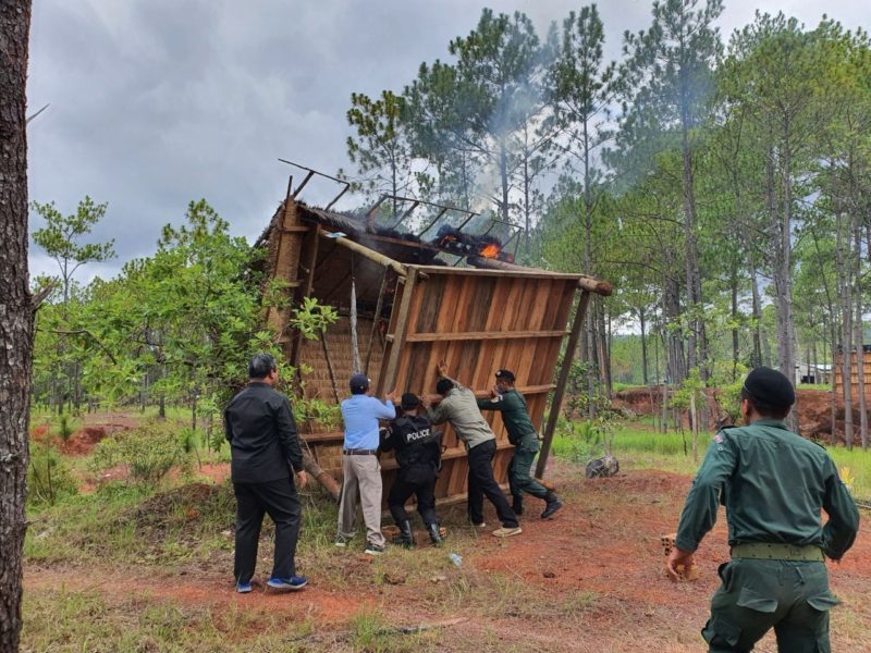 កំពង់ស្ពឺ៖ ផ្ទះហោះនិងបង្គោលអនាធិបតេយ្យក្នុងឧទ្យានជាតិព្រះសុរាម្រិត-កុសុមៈ”គីរីរម្យ” ត្រូវបានកំលាំងគណៈបញ្ជាការឯកភាពខេត្ដ ចុះរុះរើកាលពីព្រឹកថៃ្ងទី០៧ ខែកក្កដា ឆ្នាំ២០២០នេះ ដោយកម្លាំងចំរុះដឹកនាំដោយ លោក សរ សុពុត្រា អភិបាលរងខេត្ដកំពង់ស្ពឺ តំណាងលោក វ៉ី សំណាង អភិបាលនៃគណៈអភិបាលខេត្ដ និងជាប្រធានគណៈបញ្ជាការឯកភាពខេត្ដ បានចុះពិនិត្យនិងធ្វើការរុះរើ របងព័ទ្ធដី រោងចាំដី ផ្ទះហោះ និងសំណង់អនាធិបតេយ្យសង់រំលោភយកដីធ្វើជាកម្មសិទ្ធ នៅក្នុងតំបន់ឧទ្យានជាតិ ព្រះសុរាម្រិត-កុសុមៈ “គីរីរម្យ” ចំណុចនាគព័ន្ធ ចំណុចអូរកសេះ ស្ថិតក្នុងឃុំចំបក់ ស្រុកភ្នំស្រួច ខេត្តកំពង់ស្ពឺ ។