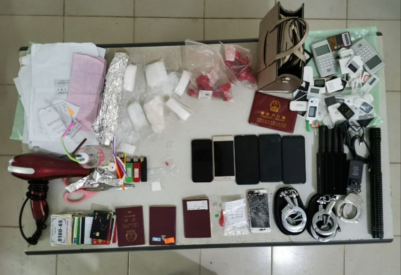 ចំពោះវត្ថុតាងដកហូតរួមមាន÷ ១/ រថយន្ត ចំនួន ០១ គ្រឿង ម៉ាក Highlander ពណ៌ខ្មៅ ពាក់ស្លាកលេខ ព្រះសីហនុ 2A-9891 ២/ ម៉ូតូ ចំនួន០១គ្រឿង ម៉ាក PCX ពណ៌ស គ្មានស្លាកលេខ ៣/ ថ្នាំគ្រាប់ពណ៌ក្រហម ចំនួន០២គ្រាប់ និងម្សៅសថ្លា ចំនួន០១កញ្ចប់ ( សង្ស័យជាថ្នាំញៀន ) ៤/ ត្រាក្រហម ចំនួន០៨ ត្រា ៥/ កាតធនាគារ ចំនួន៥៤ សន្លឹក ៦/ ខ្នោះដៃ ចំនួន០៣ ៧/ ម៉ាស៊ីនផ្លុំសក់ ចំនួន០១ ៨/ វ៉ាលី ចំនួន០២ ( តូច០១ និង ធំ០១ ) ៩/ ទូរស័ព្ទដៃ ចំនួន០៦គ្រឿង ១០/ ដំបងឆក់ ចំនួន០១ដើម ១១/ ឧបករណ៍ផ្តាច់សេវាទូរស័ព្ទ ចំនួន ០១គ្រឿង និងឯកសារមួយចំនួន ១២/ ឧបករណ៍សម្រាប់ឆែកទិន្ន័យធនាគារមួយចំនួន ១៣/ លិខិតឆ្លងដែន ចំនួន០៣ច្បាប់ ១៤/ ឧបករណ៍សម្រាប់ប្រើប្រាស់គ្រឿងញៀន មួយចំនួន ១៥/ កាបូបដៃ ចំនួន០១ ១៦/ ស៊ីមទូរស័ព្ទមួយចំនួន ១៧/ អត្តសញ្ញាណប័ណ្ណមួយចំនួន ១៨/ ឈើចាក់ធ្មេញ ចំនួន០១ដុំ ១៩/ ឧបករណ៍ឆែកទិន្នន័យធនាគារ ចំនួន១៣គ្រឿង