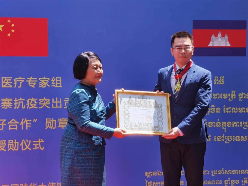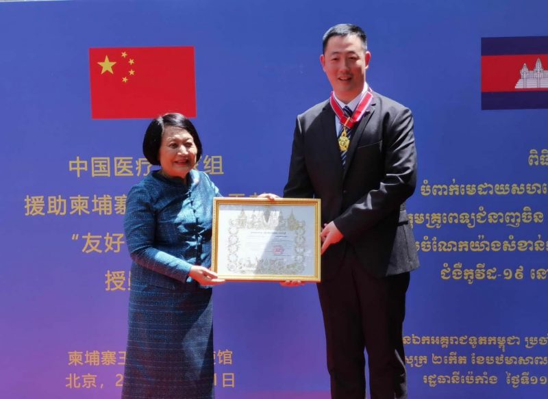 ចំពោះមេដាយដែលបានបំពាក់ជូននាលើកនេះ ក្នុងបំណងកោតសរសើរដល់ការខិតខំប្រឹងប្រែង និងរួមចំណែកយ៉ាងលេចធ្លោរបស់ពួកគាត់ ក្នុងការជួយកម្ពុជាប្រយុទ្ធប្រឆាំងលើជំងឺវីរុស។ កម្ពុជានិងចិនបន្តជួយគ្នាទៅវិញទៅមក ហើយប្រជាជនកម្ពុជានឹងបន្តឈរជាមួយប្រជាជនចិនជានិច្ច។