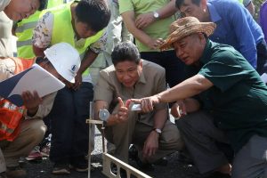 កាលពីម្សិលមិញនេះ ឯកឧត្តម ស៊ុន ចាន់ថុល ទេសរដ្ឋមន្ត្រី រដ្ឋមន្ត្រីក្រសួងសាធារណការនិងដឹកជញ្ជូន បានដឹកនាំគណៈប្រតិភូមួយក្រុមរួមមាន៖ ឯកឧត្តម ខូយ រីដា អភិបាលរងខេត្តពោធិសាត់ មន្ត្រីជាន់ខ្ពស់ក្រសួង និងមន្ត្រីនៃមន្ទីរសាធារណការនិងដឹកជញ្ជូនខេត្ត អញ្ជើញចុះត្រួតពិនិត្យគុណភាពកំណាត់ផ្លូវជាតិលេខ៥៥ ដែលកំពុងសាងសង់និងជួសជុលឡើងវិញដោយក្រុមហ៊ុនសាជីវកម្មស្ពានថ្នល់ចិន(CRBC)។ ផ្លូវនេះមានប្រវែងសរុបចំនួន១៨២+១៦៦គីឡូម៉ែត្រ និងទទឹង៩ម៉ែត្រ សាងសង់ឡើងក្រោមប្រាក់កម្ចីសម្បទានពីរដ្ឋាភិបាលនៃសាធារណរដ្ឋប្រជាមានិតចិន រួមជាមួយនឹងថវិកាបដិភាគរបស់រាជរដ្ឋាភិបាលកម្ពុជាសរុបប្រមាណ១៣២លាន ពីរសែនដុល្លារសហរដ្ឋអាមេរិក ជាប្រភេទផ្លូវDBST គិតចាប់ពីផ្លូវជាតិលេខប្រាំឋិតនៅចំនុចPK៩១+១៥០ តំបន់ក្រវាញរហូតដល់ស្រុកវាលវែង-ឃុំថ្មដា ជាប់ព្រំដែនកម្ពុជាថៃ មានទិសចរាចរណ៍ចំនួនពីរគន្លង។ គម្រោងផ្លូវនេះបានចាប់ដំណើរការបើកការដ្ឋានសាងសង់នៅថ្ងៃទី១២ ខែមីនា ឆ្នាំ២០១៥ និងគ្រោងនឹងបញ្ចប់ការសាងសង់នៅថ្ងៃទី១២ ខែកញ្ញា ឆ្នាំ២០១៨ ដោយរហូតមកដល់ពេលនេះក្រុមហ៊ុនសាងសង់សម្រេចបានប្រមាណ៨៥ភាគរយហើយ។ ឯកឧត្តមបានគូសបញ្ជាក់ថាផ្លូវនេះជាសសៃឈាមសេដ្ឋកិច្ចមួយយ៉ាងសំខាន់សម្រាប់ការតភ្ជាប់ ទំនាក់ទំនង សមាហរណកម្មផ្ទៃក្នុង ក៏ដូចជាការសម្រួលដល់ការធ្វើដំណើររបស់ប្រជាពលរដ្ឋបានងាយស្រួលនិងឆាប់រហ័ស និងរួមចំណែកដល់ការប្រែក្លាយតំបន់សក្តានុពលផ្នែកកសិកម្ម ពិសេសតំបន់ដាច់ស្រយាលជាប់ព្រំប្រទល់កម្ពុជាថៃ ដែលអាចតភ្ជាប់មកកាន់ទីប្រជុំជនបានងាយស្រួល។ ជាពិសេស ផ្លូវនេះជួយធ្វើឱ្យប្រសើរឡើងដល់ការតភ្ជាប់រវាងកម្ពុជានិងបណ្តាប្រទេសជិតខាងសម្រួលការធ្វើពាណិជ្ជកម្មឆ្លងកាត់ព្រំដែន ការវិនិយោគ និងជំរុញដល់ការអភិវឌ្ឍទេសចរណ៍ និងកសិកម្មផងដែរ៕