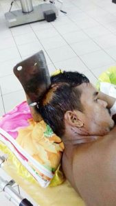 ខេត្តកំពង់ចាម ៖ ហេតុការណ៍ដ៏រន្ធត់មួយបានកើតឡើងនៅពេលកាំបិតប៉័ងតោហោះទៅដោតចំ ក្បាលជនរងគ្រោះដែលកំពុងអង្គុយបាចទឹកទូកមិនដឹងអីសោះ បណ្តាលឲ្យរបួសធ្ងន់ ហើយត្រូវបញ្ជូនមកកាន់មន្ទីរពេទ្យខេត្តកំពង់ចាម ។ហេតុការណ៍នេះ នៅថ្ងៃទី១៣ ខែកក្កដា ឆ្នាំ២០១៧កន្លងទៅនេះ នៅត្រង់ចំណុច តាមមាត់ទន្លេមេគង្គ ស្ថិតក្នុងភូមិថ្មគោល ឃុំរអាង ស្រុកកំពង់សៀម ។មុនកើតហេតុ មានប្តីប្រពន្ធមួយគូ រស់នៅក្បែរផ្ទះជនគ្រោះ ក៏កើត អំពើហិង្សាក្នុងគ្រួសារឈ្លោះទាស់គ្នា ពេលនោះគេឃើញប្តីយកកាំបិតប៉័ងតោក្នុងបំណងកាប់ចិញ្ច្រាំខោអាវ ខណៈនោះប្រពន្ធក៏ស្ទុះទៅទាញកាំបិតពីដៃប្តី ស្រាប់តែកាំបិតភ្លាត់ហោះចេញពីផ្ទះទៅមាត់ទន្លេ ចំក្បាលជនរង គ្រោះកំពុងអង្គុយបាចទឹកទូក ចាក់ដោតចំកណ្តាលក្បាលរងរបួសធ្ងន់ ។ភ្លាមៗនោះក៏ត្រូវបានសាច់ញាតិបញ្ជូន ជនរងគ្រោះទៅកាន់មន្ទីរពេទ្យផងដែរ ។ស្ត្រីសង្ស័យឈ្មោះ ទូច ចាន់ណា ភេទស្រី អាយុ៣០ឆ្នាំ ប្តីឈ្មោះ ស៊ឹម ធា អាយុ៣០ឆ្នាំ ចំណែកជនរង គ្រោះឈ្មោះជា សុខ ទក ភេទប្រុស អាយុ២៩ឆ្នាំ ។ជនរងគ្រោះនិងស្ត្រីសង្ស័យជាបងប្អូនជីដូនមួយ និងមានទីលំនៅក្បែរខាងគ្នា ស្ថិតក្នុងភូមិថ្ម គោលឃុំរអាង ខេត្តកំពង់ចាម៕