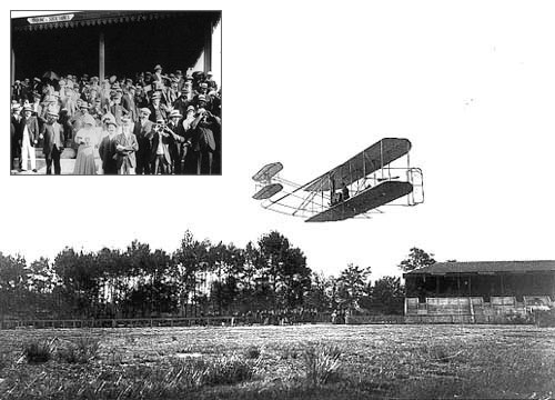 នៅថ្ងៃទី 8 ខែសីហា ឆ្នាំ 1908 បងប្អូនប្រុសរបស់ Wright បានបង្ហាញពីម៉ាស៊ីនហោះហើររបស់ខ្លួននៅក្នុងការហោះហើរជាសាធារណៈលើកទីមួយគឺប្រាំឆ្នាំបន្ទាប់ពីការហោះហើរបានជោគជ័យលើកដំបូងរបស់ពួកគេនៅឆ្នាំ 1903 ។មនុស្សជាច្រើននៅក្នុងសហគមន៍អាកាសចរណ៍អ៊ឺរ៉ុបជាពិសេសនៅប្រទេសបារាំងមានការសង្ស័យចំពោះរបាយការណ៍នៃការហោះហើរដែលជោគជ័យរបស់ Wright’s Brothers សូម្បីតែការប្រកាសនៅឆ្នាំ 1906 ថាបារាំងនឹងធ្វើបាតុកម្មជាសាធារណៈជាលើកដំបូងនៃការហោះហើរដែលមានថាមពល។ដើម្បីបង្ហាញពីការសង្ស័យរបស់ពួកគេខុស យន្តហោះដំបូងបានហោះហើរជាមួយនឹងលោក Wilbur នៅឯការត្រួតពិនិត្យនៅឯទីលានប្រណាំងនៅ Le Mans ប្រទេសបារាំង។ ការហោះហើរលើកទីមួយមានរយៈពេលត្រឹមតែមួយនាទី 45 វិនាទីប៉ុន្តែសមត្ថភាពរបស់ Wright ដើម្បីធ្វើឱ្យធានាគារវិលនិងហោះហើររង្វង់ភ្ញាក់ផ្អើលនិងភ្ញាក់ផ្អើលដល់អ្នកយាមហើយក្រោយមកបានបំបិទមាត់អ្នករិះគន់។ខណៈពេលដែលនៅប្រទេសបារាំងលោក Wilbur បានក្លាយជាមិត្តភក្តិជាមួយ Léon Bollée ដែលជាម្ចាស់រោងចក្ររថយន្តមួយជាកន្លែងដែលគាត់នឹងប្រមូលផ្តុំហើយត្រូវបានផ្តល់ជំនួយ។ លោក Madame Bolléeបានស្ថិតនៅក្នុងសប្តាហ៍ចុងក្រោយនៃការមានផ្ទៃពោះរបស់នាងនៅពេលដែលលោក Wilbur មកដល់។ គាត់បានសន្យានឹងនាងថាការហោះហើរនេះនឹងធ្វើឡើងនៅថ្ងៃដែលទារកបានកើតហើយដូច្នេះវាបានធ្វើ។បងប្អូនប្រុសWright មានទំនាស់ខ្លះត្រូវបានគេជឿថាមានវិស្វកម្មយន្តហោះជោគជ័យដំបូងរបស់ពិភពលោក។ មិនដូចអ្នកឌីហ្សាញម៉ាស៊ីនហោះហើរដទៃទៀតនៃពេលវេលាដែលផ្តោតលើថាមពលម៉ាស៊ីននោះ។ការផ្តោតអារម្មណ៍របស់ពួកគេគឺលើប្រព័ន្ធគ្រប់គ្រងឌីណាមីដែលគ្រប់គ្រងផ្ទៃរបស់ម៉ាស៊ីនហោះហើរ។ ការត្រួតពិនិត្យអ័រវីលនិងវីរៈបានជួយឱ្យយន្ដហោះដឹកនាំយន្តហោះប្រកបដោយប្រសិទ្ធភាពនិងរក្សាលំនឹងរបស់វា។បងប្រុសនេះត្រូវបានគេនិយាយថាបានរកឃើញការបំផុសគំនិតសម្រាប់ការគ្រប់គ្រងពីការរចនាកង់។ បុរសទាំងពីរនាក់នេះបានចាប់អារម្មណ៍លើកង់ប្រជាប្រិយនៅពេលនោះហើយបានបើកហាងជួសជុលនិងលក់ដូររបស់ពួកគេផ្ទាល់នៅឆ្នាំ 1892 ដើម្បីផលិតម៉ាកយីហោផ្ទាល់ខ្លួនរបស់ពួកគេ។ កង់របស់ពួកគេផ្ទាល់គឺបង្ហាញពីសារមន្ទីរអាកាសនិងអវកាសជាតិ។