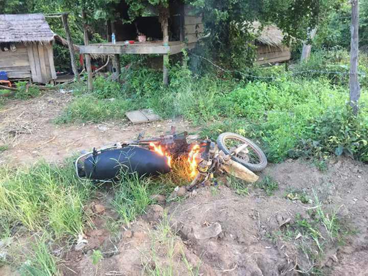 កំពង់ធំ:ល្ងាចថ្ងៃម្សិលមិញវេលាម៉ោង៦នឹង00នាទីនារីម្នាក់ខឹងប្ដីដើរផឹកស្រារៀងរាល់ថ្ងៃហើយមកផ្ទះតែងរករឿងប្រពន្ធកូននោះទើបនាងជាប្រពន្ធទប់កំហឹងមិនបានក៏យកសាំងដុតម៉ូតូចោលឆេះស្ទើទាំងស្រុងដែលករណីនេះកើតឡើងនៅ ភូមិអូរពកសាមគី្គ ឃុំមានរឹទ្ធ ស្រុកសណ្ដាន់ ខេត្តកំពង់ធំ។