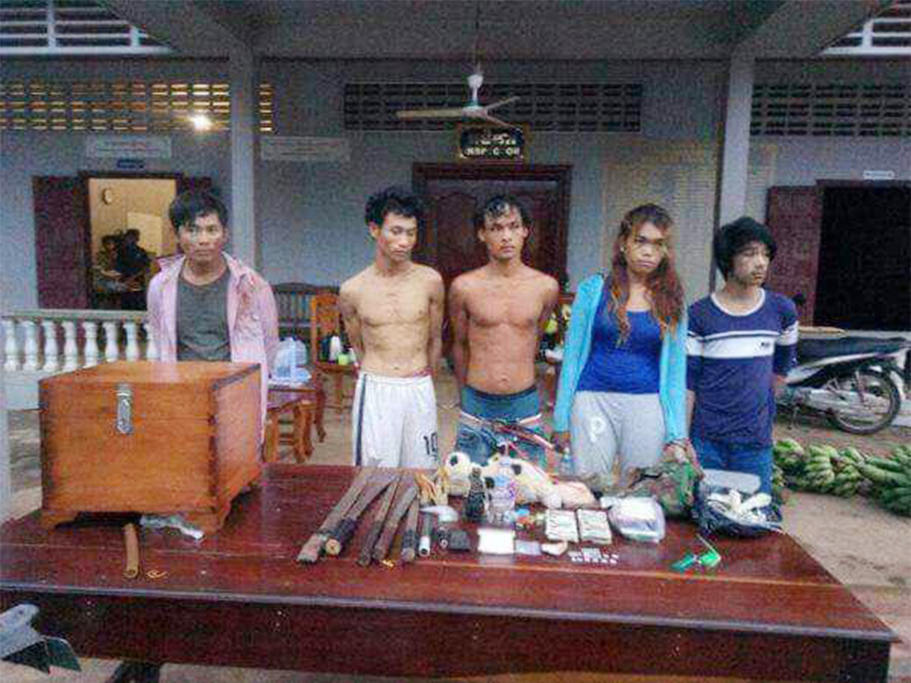 កំពង់ចាម: កាលពីថ្ងៃម្សិលមិញ សមត្ថកិច្ចបានចាប់ឃាត់ខ្លួន ជនសង្ស័យប្រុសស្រី៥នាក់ ជាប់ពាក់ព័ន្ធថ្នាំញៀនត្រូវបានកម្លាំងជំនាញការិយាល័យប្រឆាំងគ្រឿងញៀននៃស្នងការដ្ឋាននគរបាលខេត្តកំពង់ចាមសហការណ៍ជាមួយកម្លាំងអធិការដ្ឋាននគរបាលស្រុកចំការលើ បើកប្រតិបត្តិការណ៍ចុះបង្ក្រាបការជួញដូរថ្នាំញៀន២ករណី និងឃាត់ខ្លួនជាបន្តបន្ទាប់ ។ករណីទី១.សមត្ថកិច្ចធ្វើឡើងកាលពីវេលាម៉ោង១ និង១៥នាទី នៅភូមិវាលរីកើតឃុំស្វាយទាបស្រុកចំការលើ ខេត្តកំពង់ចាម បានឃាត់ខ្លួនជនសង្ស័យ២នាក់ ទី១-ឈ្មោះ នូ សុឃាន់ ភេទប្រុស អាយុ១៨ឆ្នាំ ជនជាតិខ្មែរ និងទី២-ឈ្មោះ អោម ចាន់ណា ភេទស្រី អាយុ២០ឆ្នាំ ជនជាតិខ្មែរ ជនសង្ស័យទាំង២នាក់នេះរស់នៅភូមិវាលរីកើត ឃុំស្វាយទាប ស្រុកចំការលើ ខេត្តកំពង់ចាម។ក្រោយពីឃាត់ខ្លួន សមត្ថកិច្ចបានធ្វើការរឹបអូសថ្នាំញៀនប្រភេទម្សៅក្រាមពណ៌សថ្លា១០កញ្ចប់, ទូរស័ព្ទដៃ២គ្រឿង, ដាវ៣ដើម, ជំពាមកៅស៊ូរ២, គ្រាប់កាំភ្លើង៣គ្រាប់, ឧបករណ៍ជក់ និងវេចខ្ចប់ថ្នាំញៀនមួយចំនួនទៀត។ដោយឡែកករណីទី២.សមត្ថកិច្ចបានធ្វើឡើងកាលពីវេលាម៉ោង៤ និង៣៥នាទីល្ងាច ថ្ងៃដដែល ដោយកម្លាំងជំនាញបានបង្ក្រាបនៅភូមិស្ពឺលិច ឃុំស្ពឺ ស្រុកចំការលើ ខេត្តកំពង់ចាម ហើយបានឃាត់ខ្លួនជនសង្ស័យ៣នាក់ ទី១-ឈ្មោះ វ៉េត សុខកាំង ភេទប្រុស អាយុ២៧ឆ្នាំ ជនជាតិខ្មែរ រស់នៅភូមិស្ពឺលិច ឃុំស្ពឺ ស្រុកចំការលើ ខេត្តកំពង់ចាម។ ទី២-ឈ្មោះ វ៉ាន មារ៉ា ភេទប្រុស អាយុ២៧ឆ្នាំ ជនជាតិខ្មែរ និងទី៣-ឈ្មោះ ស្រេន សារ៉េន ភេទប្រុស អាយុ២៤ឆ្នាំ ជនជាតិខ្មែរ រស់នៅភូមិស្ពឺក ឃុំជយោ ស្រុកចំការលើ ខេត្តកំពង់ចាម។ក្រោយឃាត់ខ្លួន សមត្ថកិច្ចបានដកហូតថ្នាំញៀនប្រភេទម្សៅក្រាមពណ៌សថ្លា២កញ្ចប់ (ធំ១កញ្ចប់), ទូរស័ព្ទដៃ១គ្រឿង, ដាវ២ដើម, ដែកចុងស្រួច(ជំពូសទុង)២ដើម, គ្រាប់បែកដៃ១គ្រាប់, ឧបករណ៍ជក់ និងវេចខ្ចប់ថ្នាំញៀនមួយចំនួនផង ៕