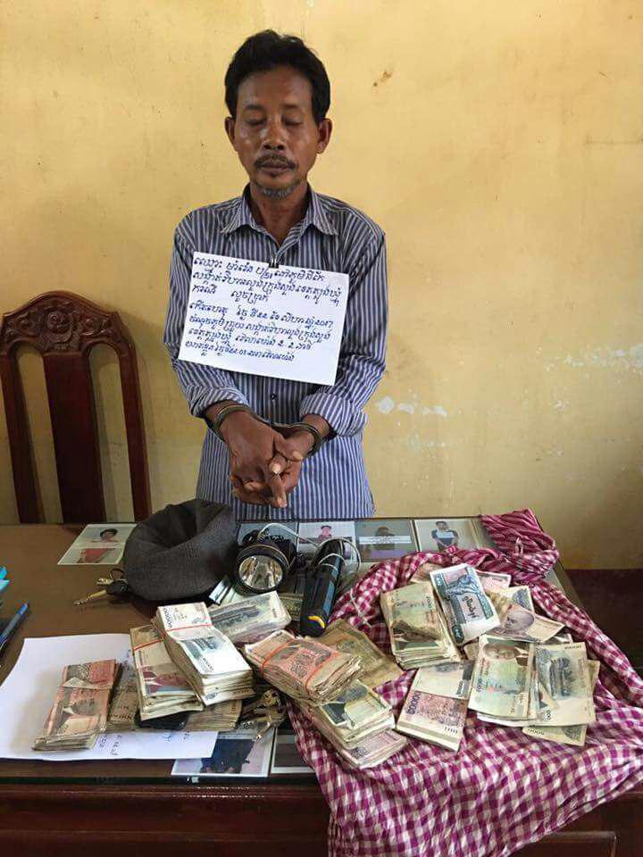 ខេត្តត្បូងឃ្មុំ: នគរបាលក្រុងសួងសហការជាមួយនគរបាលប៉ុស្តិ៍រដ្ឋបាលសង្កាត់វិហារលួងធ្វើការចាប់ឃាត់ខ្លួនបុរសម្នាក់ បន្ទាប់ពីម្ចាស់ផ្ទះបានយករូបភាពនៅលើកាមេរ៉ាសុវត្ថិភាពមកបង្ហាញជាវត្ថុតាំងដោយជនសង្ស័យបានធ្វើសកម្មភាពគាស់ផ្ទះចូលលួចយកប្រាក់អស់ជិត០៩លានរៀលកាលពីវេលាម៉ោង០២ និង០២នាទីរំលងអាធ្រាត្រឈានចូលថ្ងៃទី២២ម្សិលមិញ ស្ថិតក្នុងភូមិជ្រួយ សង្កាត់វិហារលួង ក្រុងសួង ខេត្តត្បូងឃ្មុំ។លោកវរសេនីយ៍ ឈន សុធន អធិការនគរបាលក្រុងសួងបានឲ្យដឹងថាជនរងគ្រោះមានឈ្មោះ ហេង សុខឃន់ ភេទស្រី អាយុ៤១ឆ្នាំ មានទីលំនៅស្ថិតនៅក្នុងភូមិ-ឃុំកើតហេតុខាងលើ ដោយត្រូវជនសង្ស័យឈ្មោះ ម៉ា រ៉េន ភេទប្រុស អាយុ៥១ឆ្នាំ ជាតិខ្មែររស់នៅក្នុងភូមិជីកែ សង្កាត់សួង ក្រុងសួង បានធ្វើសកម្មភាពគាស់ផ្ទះចូលលួចយកប្រាក់អស់ចំនួន០៧លាន និង០៦សែនរៀល និងប្រាក់ដុល្លារចំនួន២៧០$ ខណៈពេលដែលជនរងគ្រោះកំពុងតែសម្រាកនៅក្នុងបន្ទប់គេងរបស់ខ្លួន។លោកអធិការបានបន្តឲ្យដឹងថា ក្រោយពីធ្វើសកម្មភាពលួចរួចជនសង្ស័យបានរត់គេចខ្លួនបាត់ ដោយយោងតាមពាក្យបណ្ដឹងរបស់ជនរងគ្រោះ ដែលបានយករូបភាពនៅក្នុងកាមេរ៉ាសុវត្ថិភាពមកបង្ហាញផង ទើបងាយស្រួលក្នុងការតាមចាប់ខ្លួនជនសង្ស័យបានយ៉ាងឆាប់រហ័សបែបនេះព្រមទាំងធ្វើការដកហូតបាននូវវត្ថុតាងប្រាក់ដែលចោរលួចយកទៅបានមកវិញគ្រប់ចំនួនផងដែរ។បច្ចុប្បន្នជនសង្ស័យត្រូវបានបញ្ជូនទៅកាន់អធិការដ្ឋាននគរបាលក្រុងសួងដើម្បីកសាងសំណុំរឿងបញ្ជូនទៅសាលាដំបូងខេត្តត្បូងឃ្មុំចាត់ការបន្តតាមនីតិវិធីច្បាប់ ៕