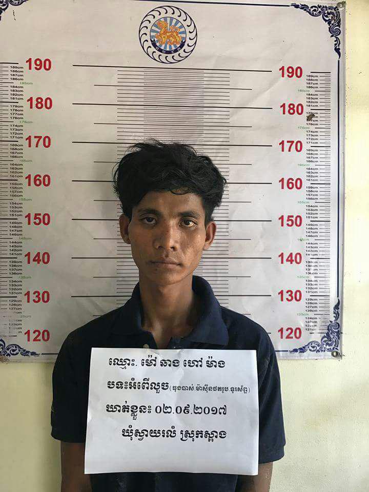 ស្រុកស្អាង៖ សមត្ថកិច្ចប៉ុស្តិ៍រដ្ឋបាលឃំុស្វាយរលំបានឃាត់ខ្លួនបុរសម្នាក់ពីបទលួចឆុងបាស ម៉ាស៊ីនថត នឹង ទូរស័ព្ទនៅថ្ងៃទី០២ ខែកញ្ញា ឆ្នាំ២០១៧នេះកាលពី វេលាម៉ោង០៩:០០នាទី នៅចំនុច ភូុមិលេខ១ ឃុំ ស្វាយរលំ ស្រុកស្អាង ខេត្តកណ្ដាល។ ជនរងគ្រោះឈ្មោះ ហាក់ ពិសី ភេទប្រុស អាយុ ២៧ ឆ្នាំ ជនជាតិខ្មែ ទីលំនៅបច្ចុប្បន្ន៖ ភូមិលេខ១ ឃុំស្វាយរលំ ស្រុកស្អាង ខេត្តកណ្ដាល។ ជនសង្ស័យឈ្មោះ ម៉ៅ ឆាង ហៅ ម៉ាង ភេទប្រុស អាយុ ២៣ឆ្នាំ ជនជាតិខ្មែរ ទីលំនៅបច្ចុប្បន្ន៖ ភូមិលេខ២ ឃុំស្វាយរលំ ស្រុកស្អាង ខេត្តកណ្ដាល។(ឃាត់ខ្លួន)វត្ថុតាងចាប់យក ធុងបាស់ ចំនួន០១ គ្រឿង,ម៉ាស៊ីនថតរូប ចំនួន០១គ្រឿង និងទូរស័ព្ទដៃ ម៉ាកចុចពិល ចំនួន០១គ្រឿង។ សមត្ថកិច្ចបានអោយដឹងថា នៅថ្ងៃទី ០២ ខែកញ្ញាឆ្នាំ២០១៧ វេលាម៉ោង ០៩និង០០នាទី នៅចំនុចផ្ទះរបស់ឈ្មោះ ហាក់ ពិសី ភូមិលេខ១ ឃុំស្វាយរលំ ស្រុកស្អាង ខេត្តកណ្ដាល។ មានឈ្មោះ ម៉ៅ ឆាង ហៅម៉ាង(ជនសង្ស័យ) បានចូលលួចយកបាន ធុងបាស់ ចំនួន០១គ្រឿង ,ម៉ាស៊ីនថតរូបចំនួន ០១គ្រឿង,និងទូរស័ព្ទម៉ាក ចុចពិលចំនួន ០១គ្រឿង ហើយបានធ្វើការគេចខ្លួន ភ្លាមនោះ ឈ្មោះ ហាក់ ពិសី(ជនរងគ្រោះ) ក៏បានចូលមកផ្ទះទាន់ហើយបាន ឃើញឈ្មោះ ម៉ៅ ឆាង ហៅម៉ាង កំពុងធ្វើសកម្មភាព លួចយកទ្រព្យសម្បត្តិរបស់ខ្លួន ដូចនេះក៏បានស្រែហៅបងប្អូនរស់នៅជិតខាង ជួយចាប់ឃាត់ខ្លួន (ជនសង្ស័យខាងលើ) ហើយឈ្មោះ ហាក់ ពិសី(ជនរងគ្រោះ)បានទូរស័ព្ទប្ដឹងមកសមត្ថកិច្ចនគរបាលរដ្ឋបាលស្វាយរលំ ហើយបាននាំខ្លួនជនសង្ស័យឈ្មោះ ម៉ៅ ឆាងហៅម៉ាង មកសាកសួរនៅប៉ុស្ដិ៍នគរបាលរដ្ឋបាលស្វាយរលំ។ នៅចំពោះមុខសមត្ថកិច្ចនគរបាលស្វាយរលំ ឈ្មោះ ម៉ៅ ឆាង ហៅម៉ាង បានសារភាពថា ខ្លួនពិតជាបានចូលផ្ទះរបស់ឈ្មោះ ហាក់ ពិសី លួចយក ទ្រព្យសម្បតិ និងសម្ភារៈដូចដែលបានរៀបរាប់ខាងលើពិតប្រាកដមែន ។ហើយកន្លងមកកាលពីថ្ងៃទី០២ខែសីហាឆ្នាំ២០១៧ ខ្លួនធ្លាប់ចូលផ្ទះរបស់ឈ្មោះ ហាក់ ពិសី លួចបានទូរស័ព្ទដៃ ចំនួន ០៣គ្រឿងម្ដងមកហើយ ម៉ាក អាយហ្វូន5 ចំនួន០១គ្រឿង ,ម៉ាកហូវៃ ចំនួន០១គ្រឿង,ម៉ាកចុចពិលចំនួន ០១គ្រឿង។បន្ទាប់មកបានបញ្ជូនខ្លួនជនសង្ស័យ រួមទាំងវត្ថុតាង មកកាន់អធិការដ្ឋាននគរបាលស្រុកស្អាងដើម្បីចាត់ការបន្ដតាមនីតិវិធី៕