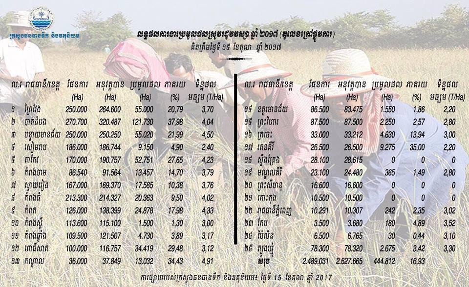 របាយការណ៍ ស្តីពីការប្រមូលផលស្រូវរដូវវស្សា ឆ្នាំ២០១៧