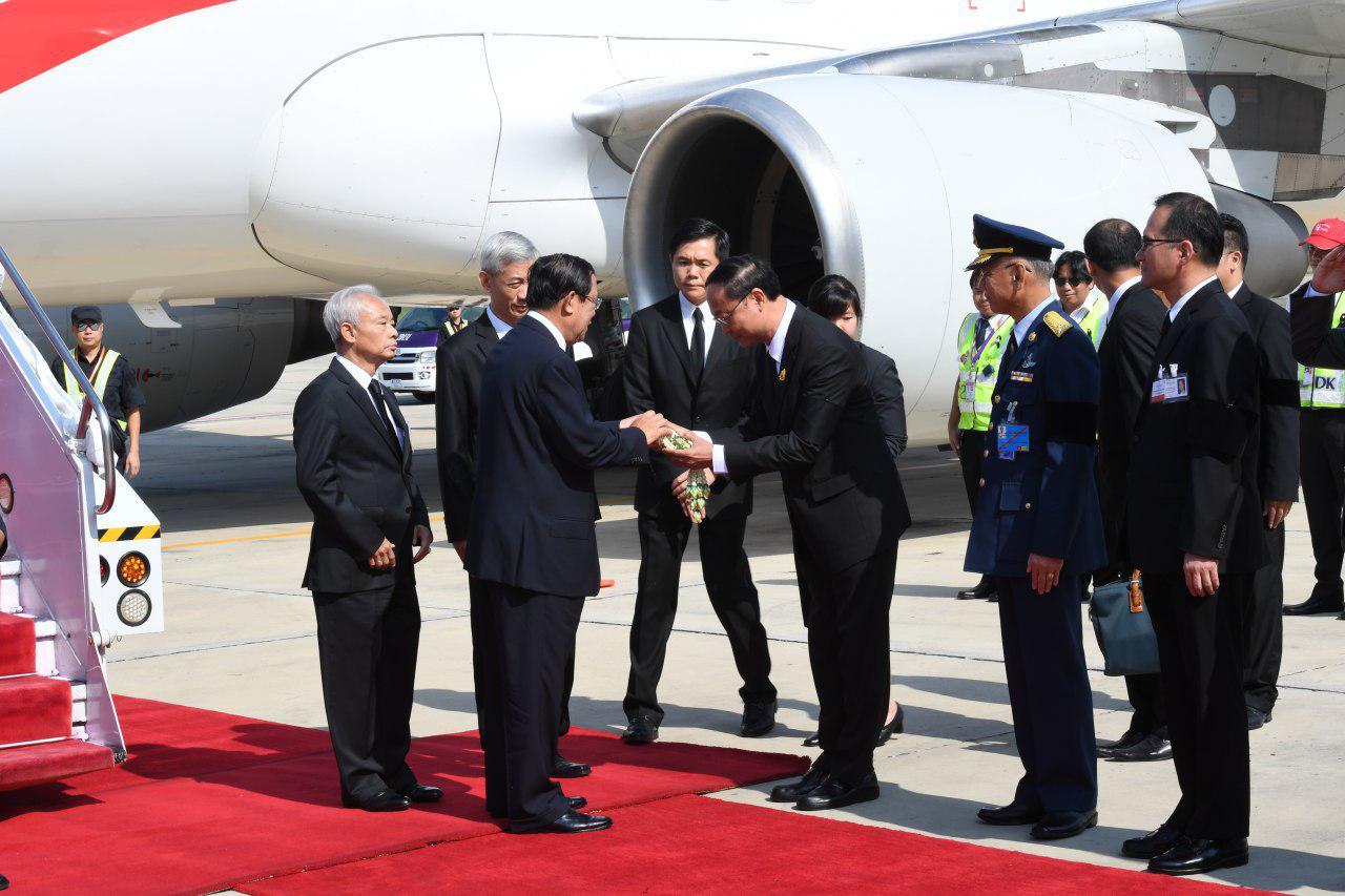 (បាងកក)៖ សម្តេចតេជោ ហ៊ុន សែន នាយករដ្ឋមន្រ្តីនៃកម្ពុជា បានអញ្ជើញដល់ទីក្រុងបាងកក ប្រទេសថៃហើយ នៅវេលាម៉ោង ៩:១៥នាទីព្រឹកថ្ងៃទី២៦ ខែតុលា ឆ្នាំ២០១៧នេះ ដើម្បីចូលរួមពិធីថ្វាយព្រះភ្លើងដល់ព្រះសព អតីតព្រះមហាក្សត្រថៃ ព្រះបាទ ភូមិបុល អាឌុលយ៉ាតេជ នៅទីក្រុងបាងកក ព្រះរាជាណាចក្រថៃ។