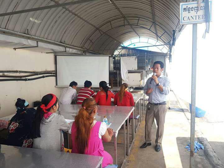 រាជធានីភ្នំពេញ ៖ នៅព្រឹក ថ្ងៃសុក្រ ទី២៧ ខែតុលា ឆ្នាំ២០១៧ ក្រសួងការងារ និងបណ្ដុះបណ្ដាលវិជ្ជាជីវៈ បានចាត់ក្រុមការងារ ប.ស.ស ចុះប្រជុំផ្សព្វផ្សាយអប់រំអំពីលក្ខខណ្ឌអនាម័យ សុវត្ថិភាពការងារ, លក្ខខណ្ឌការងារ, អត្ថប្រយោជន៍របបសន្តិសុខសង្គម និងច្បាប់ស្តីពីចរាចរណ៍ផ្លូវគោក ជូនដល់រដ្ឋបាលរោងចក្រ ប្រតិភូបុគ្គលិក សហជីពមូលដ្ឋាន និងកម្មករនិយោជិត នៅរោងចក្រ YORKMARS (CAMBODIA) GARMENT MFG CO., LTD ដែលមានទីតាំងស្ថិតនៅខណ្ឌពោធិ៍សែនជ័យ រាជធានីភ្នំពេញ ។