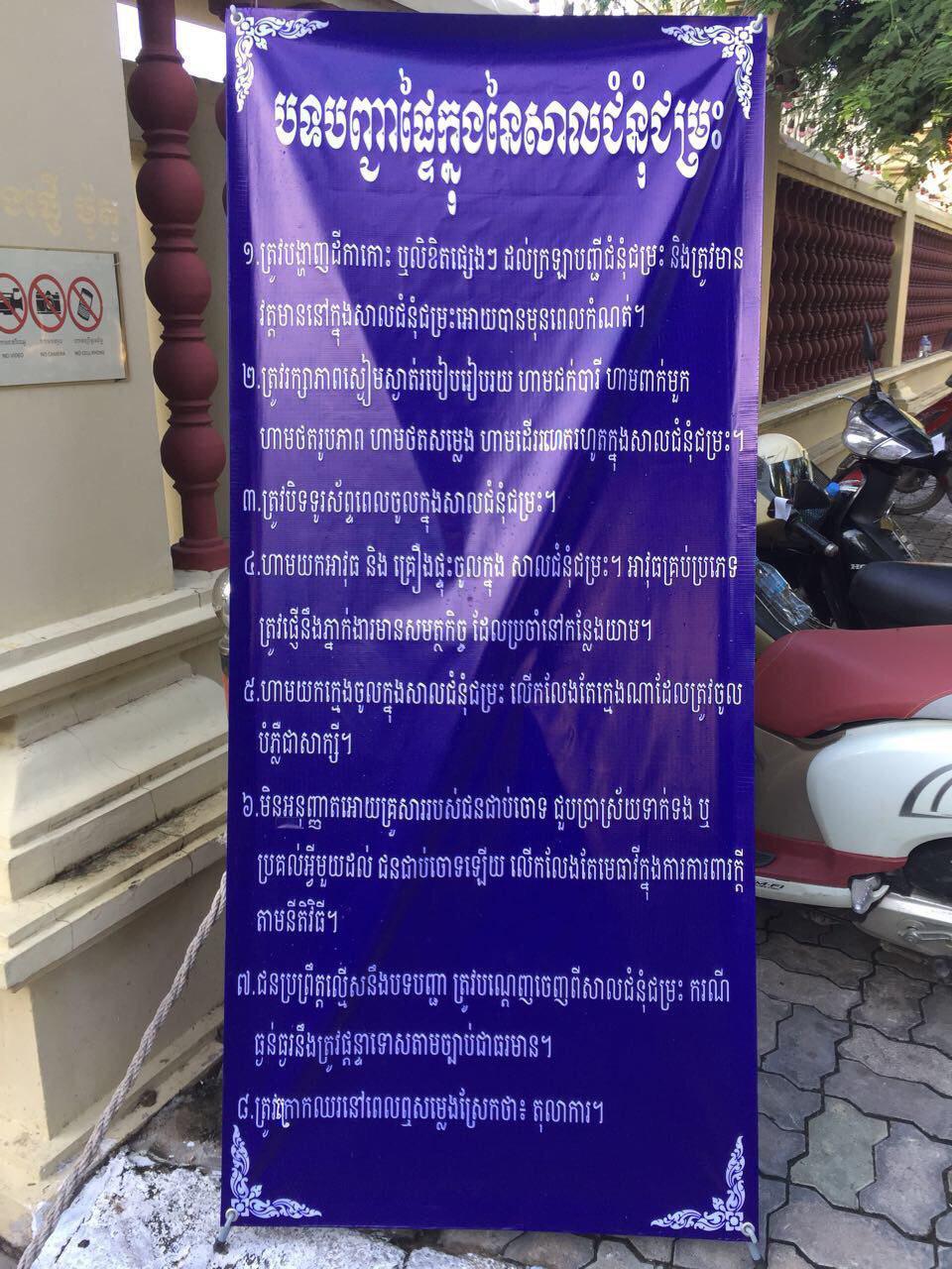 (ភ្នំពេញ)៖ នៅវេលាម៉ោង៨ព្រឹកថ្ងៃទី១៦ ខែវិច្ឆិកា ឆ្នាំ២០១៧នេះ តុលាការកំពូល បើកសវនាការជាសាធារណៈលើបណ្តឹង «រំលាយបក្សសង្គ្រោះជាតិ» ដោយមានចៅក្រម៩រូប និងតំណាងមហាអយ្យការមួយរូប ក្រឡាបញ្ជីមួយរូប និងមានមេធាវីដើមបណ្តឹងមាន៤រូប។ នៅក្នុងអង្គសវនាការ គឺមិនអនុញ្ញាតឲ្យថតសំឡេង និងថតរូបភាពទេ។ អ្នកចូលរួមតាមដានអាចកត់ត្រាបាន។