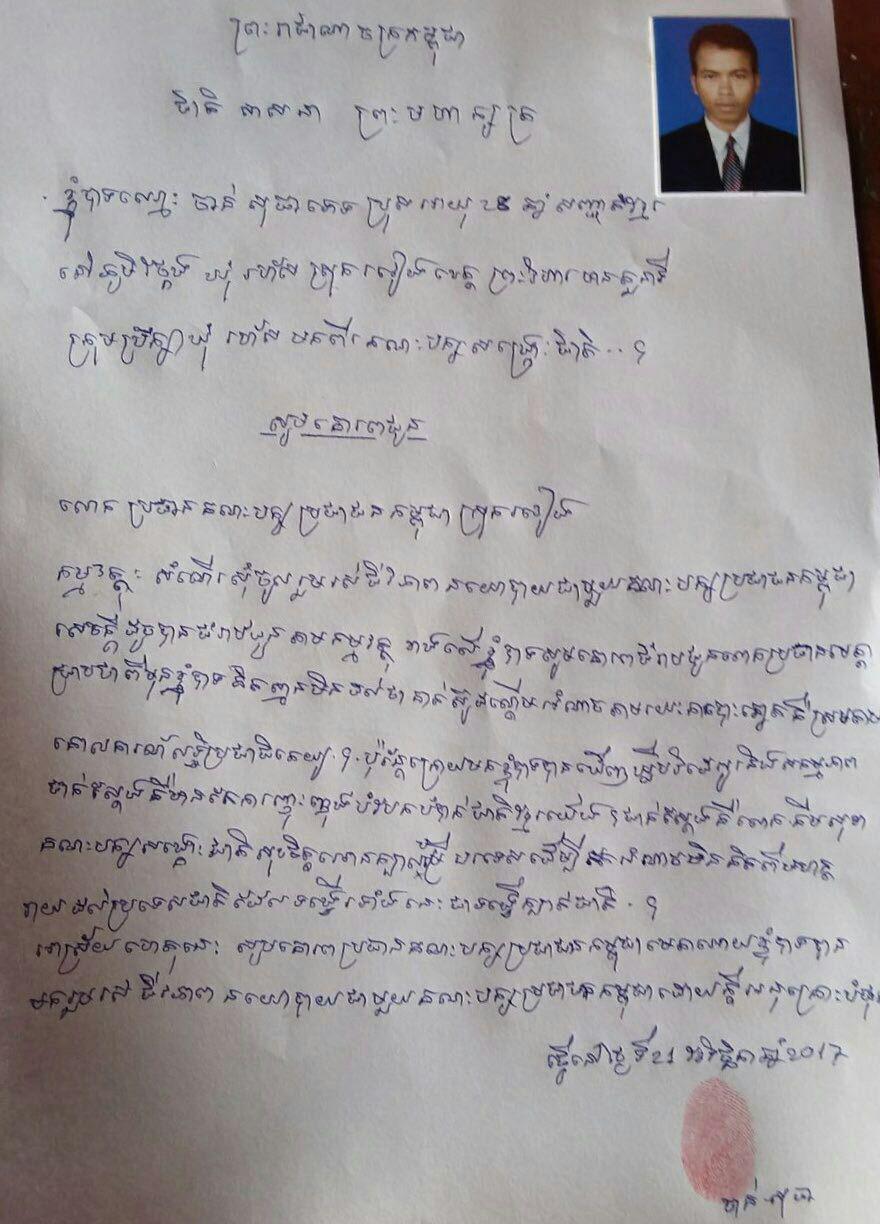 (ភ្នំពេញ)៖ គិតពេញមួយថ្ងៃនាថ្ងៃទី២១ ខែវិច្ឆិកា ឆ្នាំ២០១៧នេះ បណ្តាញសារព័ត៌មាន kamnottra បានទទួលលិខិតពីអតីតថ្នាក់ដឹកនាំមូលដ្ឋានសំខាន់ៗ សរុបចំនួន៦៣នាក់ របស់គណបក្សសង្គ្រោះជាតិដែលទើបរំលាយ ដែលបានទៅសុំចូលរួមរស់ជាមួយ គណបក្សប្រជាជនកម្ពុជា ដោយសារតែរូបគាត់ បានឃើញ នូវអំពើក្បត់ជាតិរបស់គណបក្សសង្គ្រោះជាតិ ដែលបម្រើបរទេស។