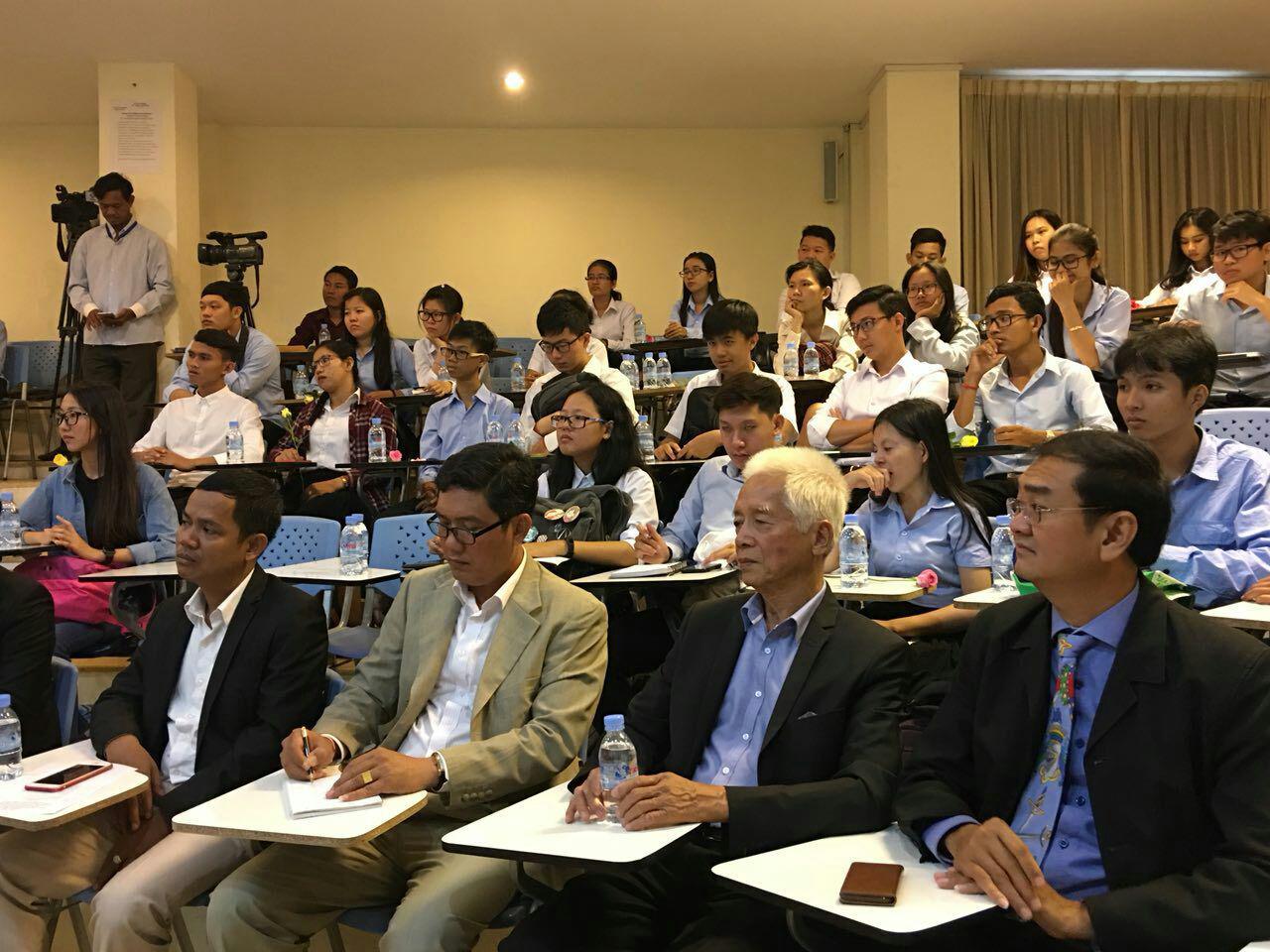 (ភ្នំពេញ)៖ ប្រធានគណៈកម្មធិការសិទ្ធិមនុស្សកម្ពុជា លោក កែវ រ៉េមី បានកំពុងធ្វើសន្និសីទសារព័ត៌មានស្ដីពី ប្រកាសជយលាភី ផលិតវិដេអូ ចំណាត់ថ្នាក់លេខ១ ក្នុងក្របខណ្ខអាស៊ាន នៅព្រឹកថ្ងៃទី២៩ ខែវិច្ឆិកា ឆ្នាំ ២០១៧ នៅអាគារG វិទ្យាស្ថានភាសាបរទេស (IFL) នៃសាកលវិទ្យាល័យភូមិន្ទភ្នំពេញ។