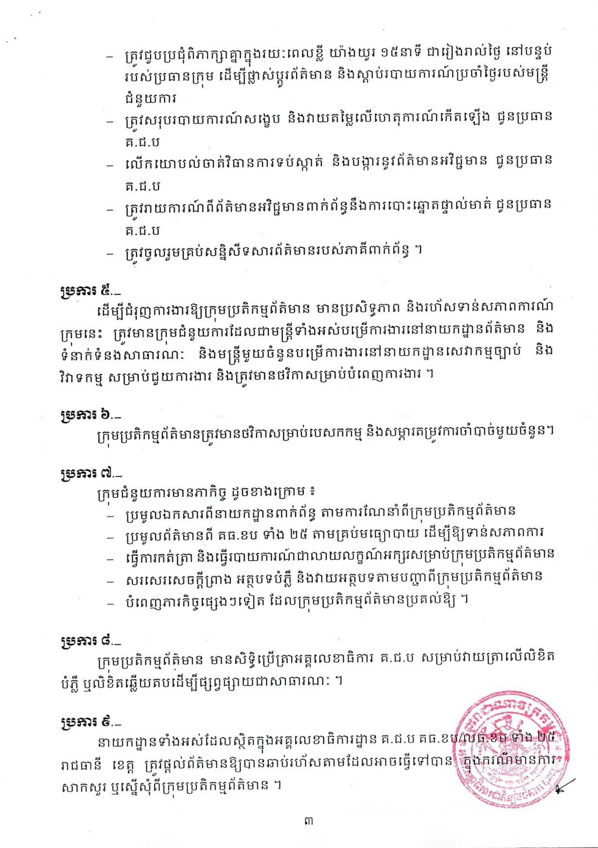 (ភ្នំពេញ)៖ លោក ស៊ិក ប៊ុនហុក ប្រធានគណៈកម្មាធិការជាតិរៀបចំការបោះឆ្នោត (គ.ជ.ប) បានចេញសេចក្តីសម្រេច បង្កើតក្រុមប្រតិកម្មព័ត៌មានរបស់ គ.ជ.ប ដើម្បីជាសេនាធិការរបស់ប្រធាន គ.ជ.ប សម្រាប់ទប់ស្កាត់ និងវាយបករាល់ចំណុចអវិជ្ជមាន។