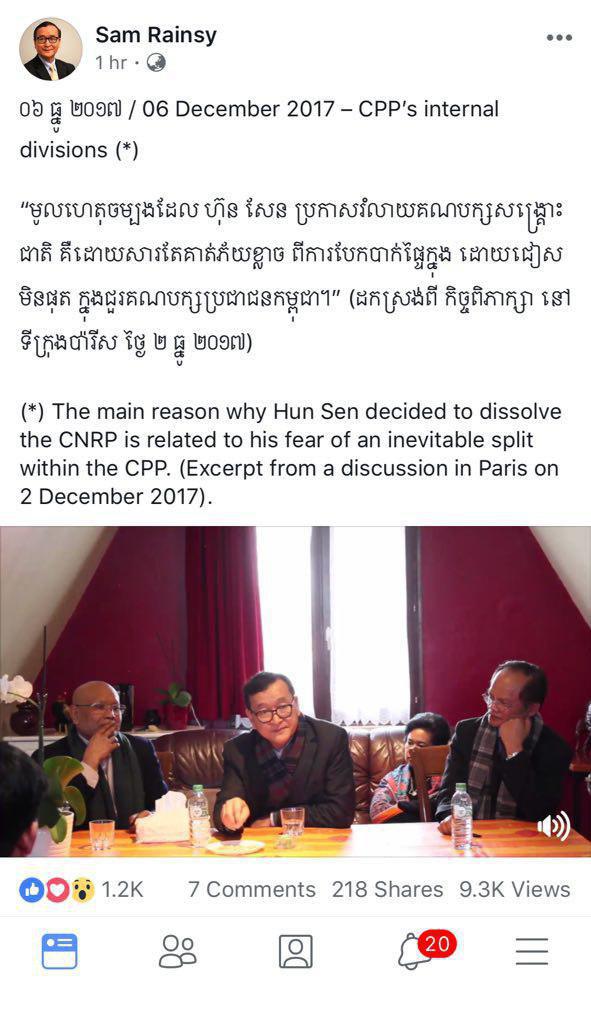 ការចំអកលើយុទ្ធសាស្រ្តរបស់ លោក សម រង្ស៊ី ពីសំណាក់ខុទ្ទកាល័យសម្តេច ស ខេង នាពេលនេះ បានធ្វើឡើងបន្ទាប់ពី ទណ្ឌិតសម រង្ស៊ី អតីតប្រធានគណបក្សសង្រ្គោះជាតិ បានថ្លែងអួតប្រាប់សមាជិករបស់ខ្លួន នៅទីក្រុងប៉ារីស ប្រទេសបារាំង កាលពីថ្ងៃទី០២ ខែធ្នូ ឆ្នាំ២០១៧ថា ក្បាលម៉ាស៊ីនគណបក្សប្រជាជនកម្ពុជា កំពុងបែកបាក់ ទើបមានការរំលាយគណបក្សសង្រ្គោះជាតិ ហើយបំផុសថា មុនរំលាយនេះសម្តេចក្រឡាហោម ស ខេង បានទាក់ទងលោក កឹម សុខា។