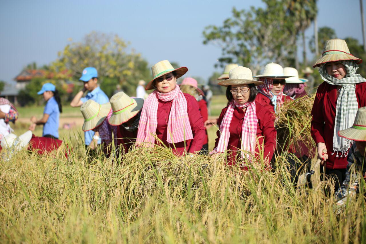 (តាកែវ)៖ សម្តេចកិត្តិព្រឹទ្ធបណ្ឌិត ប៊ុន រ៉ានី​ ហ៊ុន សែន ប្រធានកាកបាទក្រហមកម្ពុជា និងមន្ត្រីគ្រប់លំដាប់ថ្នាក់ នៅព្រឹកថ្ងៃទី១១ ធ្នូនេះ បានចុះជួយច្រូតស្រូវ ជូនប្រជាពលរដ្ឋ នៅភូមិព្រៃខ្វាវ ឃុំត្រពាំងធំខាងជើង ស្រុកត្រាំកក់ ខេត្តតាកែវ៕