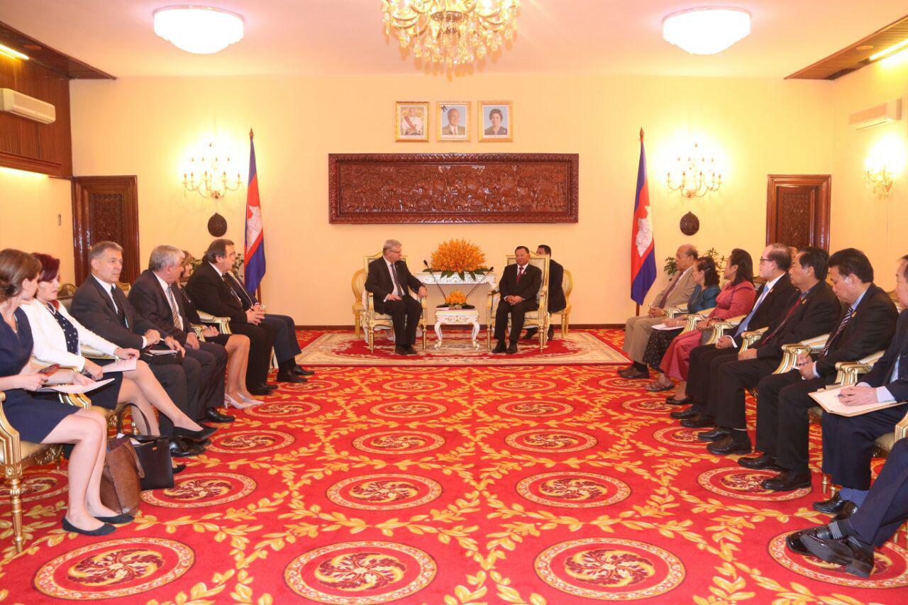(ភ្នំពេញ)៖ នៅព្រឹក ថ្ងៃទី១៣ ខែធ្នូ ឆ្នាំ២០១៧នេះ សម្តេចវិបុលសេនាភក្តី សាយ ឈុំ ប្រធានព្រឹទ្ធសភា បានទទួលជួបសវនាការជាមួយ លោក Ivo Barek អនុប្រធានព្រឹទ្ធសភា នៃសាធារណរដ្ឋឆែក នៅវិមានព្រឹទ្ធសភា។