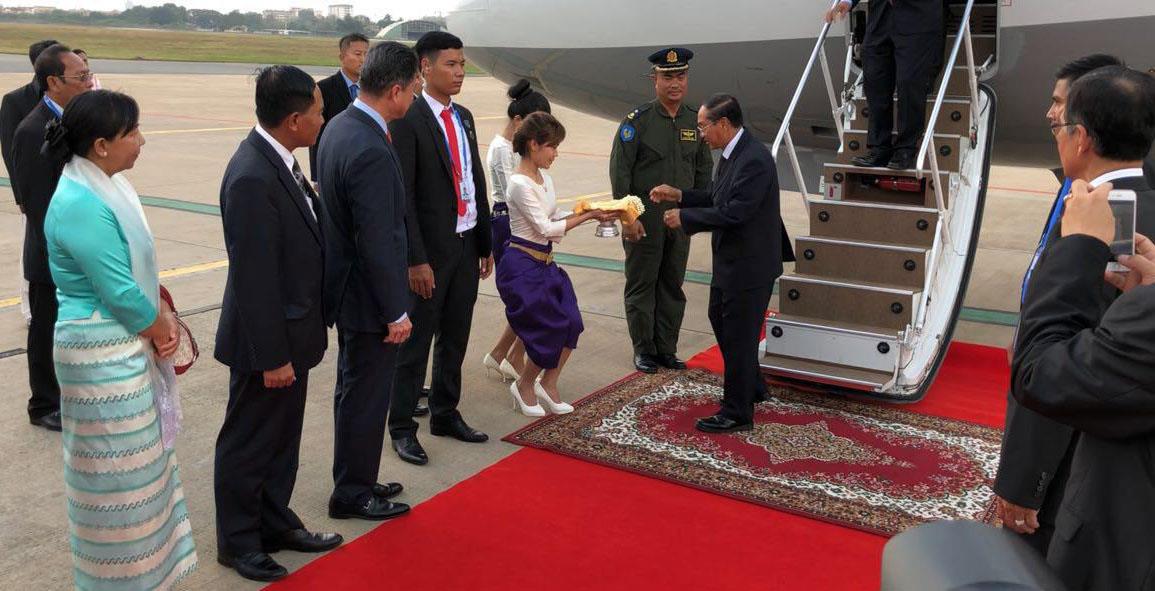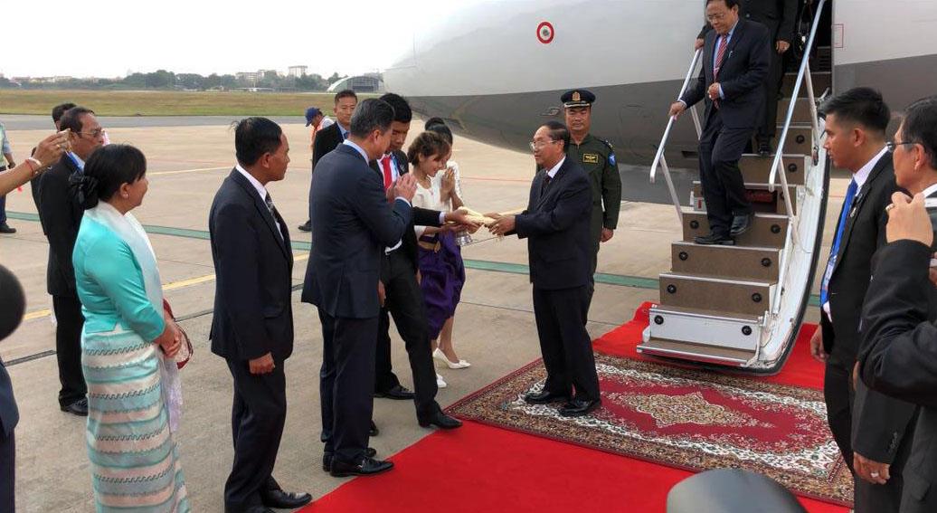 លោក មិន ស្វេ បានដឹកនាំគណៈប្រតិភូជាន់ខ្ពស់របស់ខ្លួន ធ្វើដំណើរមកដល់ព្រលានយន្តហោះអន្តរជាតិភ្នំពេញ នៅល្ងាចថ្ងៃទី៩ ខែមករា ឆ្នាំ២០១៨ម្សិលមិញ ខណៈមេដឹកនាំប្រទេសទាំង៤រូប ផ្សេងទៀត រួមជាមួយគណៈប្រតិភូរបស់ខ្លួន នឹងធ្វើដំណើរមកដល់កម្ពុជាចាប់ពីវេលាម៉ោងជាង១១ព្រឹក រហូតដល់ម៉ោងជាង២រសៀល។