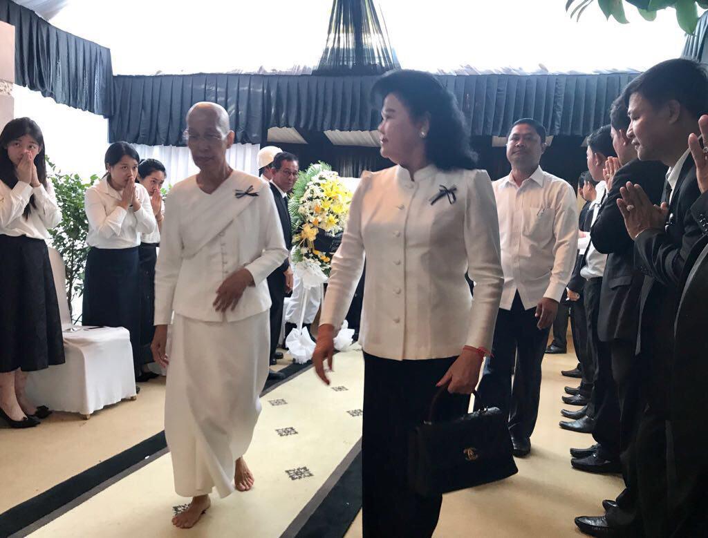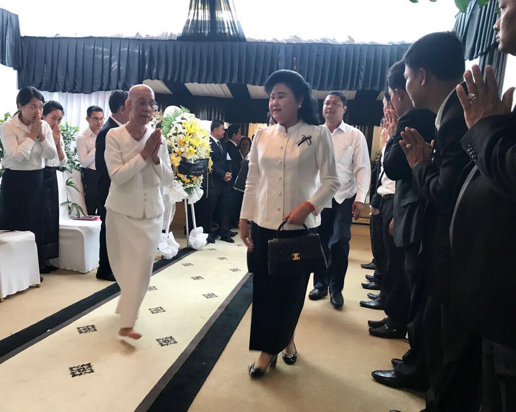 (ភ្នំពេញ)៖ នៅរសៀលថ្ងៃទី០៩ ខែមករា ឆ្នាំ២០១៨នេះ សម្តេចកិត្តិព្រឹទ្ធបណ្ឌិត ប៊ុន រ៉ានី ហ៊ុន សែន បានអញ្ជើញចូលគោរពវិញ្ញាណក្ខន្ធសពឧបាសក គង់ ខាត់ ដែលជាបិតាក្មេករបស់ សម្តេចវិបុលសេនាភក្តី សាយ ឈុំ ប្រធានព្រឹទ្ធសភា ដែលកំពុងតម្កល់ធ្វើបុណ្យ នៅគេហដ្ឋានលេខ១៦ ផ្លូវលេខ២២២ ភូមិ៣ សង្កាត់បឹងរាំង ខណ្ឌដូនពេញ រាជធានីភ្នំពេញ។