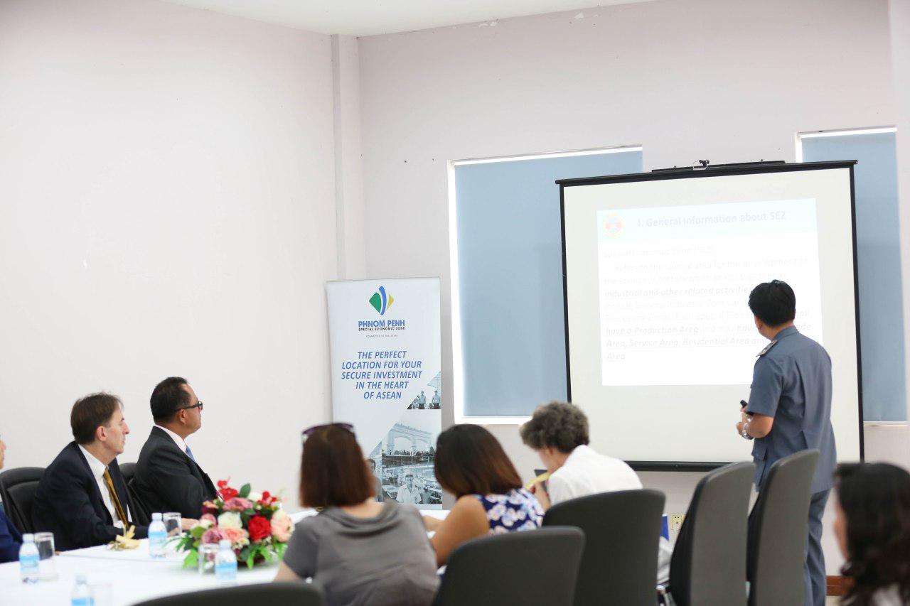 ភ្នំពេញ: ថ្ងៃសុក្រ៩កើតខែមាឃឆ្នាំរកា នព្វស័ក ពស ២៥៦១ ត្រូវនឹងថ្ងែសុក្រទី៩ខែកុម្ភ:ឆ្នាំ២០១៨ ដំណើរទស្សនកិច្ច របស់សហគមន៍ អ៊ឺរ៉ុបទៅកាន់តំបន់សេដ្ឋកិច្ចពិសេសភ្នំពេញត្រូវបានប្រព្រឹត្តឡើងកាលពីវេលាម៉ោង ១១:៣០នាទីថ្ងៃត្រង់ ហើយក៏មានការចូលរួមពីតំណាងស្ថានទូតទាំងបួនរួមមានថៃ បារាំង អាមេរិក ជប៉ុនប្រចាំនៅកម្ពុជាដោយភរិយារបស់អគ្គរាជទូតនៃស្ថានទូតទាំងបួនដឹកនាំដោយ លោក ជំទាវ ឧកញ៉ា លឹម ឈីវហូ អគ្គនាយការនៃតំបន់សេដ្ឋកិច្ចពិសេសនិង អមដំណើរដោយគណគ្រប់របស់តំបន់សេដ្ឋកិច្ចពិសេសភ្នំពេញ៕