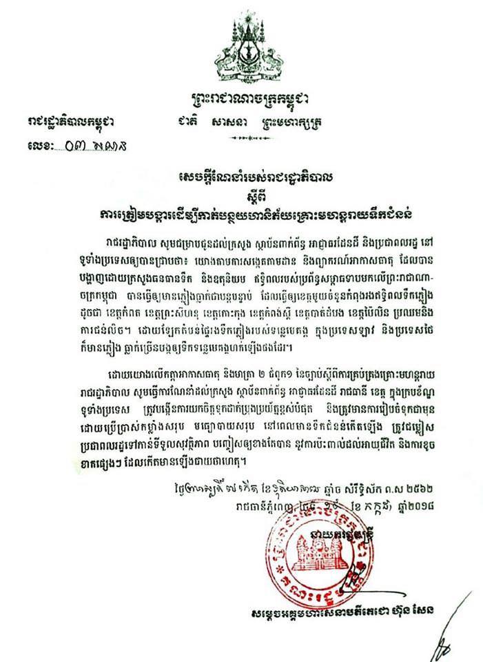 ខាងក្រោមនេះជាសេចក្តីណែនាំរបស់រាជរដ្ឋាភិបាល៖