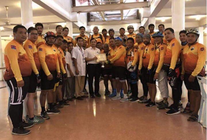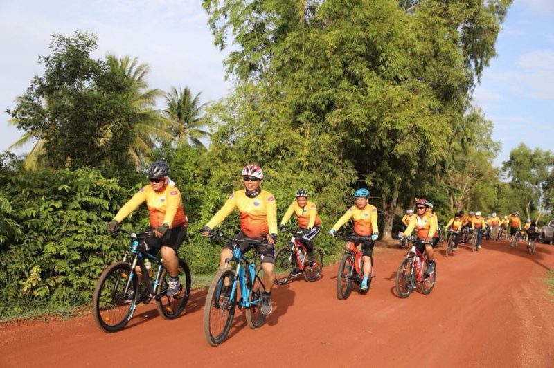 (សៀមរាប)៖- លោកឧត្តមនាវីឯក ទៀ សុខា មេបញ្ជាការរងកងទ័ពជើងទឹក និងជាមេបញ្ជាការទីបញ្ជាការជួរមុខ អគ្គលេខាធិការដ្ឋាន នៃគណៈកម្មាធិការជាតិសន្តិសុខលម្ហសមុទ្រ នៅព្រឹកថ្ងៃទី៧ ខែសីហា ឆ្នាំ២០១៨នេះ បានដឹកនាំក្រុមអ្នកជិះកង់តំបន់ភ្នំអារ៉ែង ខេត្តកោះកុង ចេញដំណើរពីក្រុងសៀមរាប ឆ្ពោះទៅកាន់គោលដៅកំណត់ និងតាមប្រាសាទនានា ដើម្បីចូលរួមលើកស្ទួយដល់វិស័យទេសចរណ៍ផង និងនាំយកថវិកា របស់សប្បុរសជន ទៅប្រគល់ជូន ដោយផ្ទាល់ដល់មន្ទីរពេទ្យគន្ធបុប្ផានាខេត្តសៀមរាប។ លោក ទៀ សុខា បានថ្លែងថា សកម្មភាព របស់ក្រុមកង់តំបន់អារ៉ែង ខាងលើនេះ ធ្វើឡើងក្នុងន័យគាំទ្រដល់ការជួយសង្រ្គោះកុមារកម្ពុជា ក្រោមប្រធានបទ “ជិះកង់ ដើម្បីស្នាមញញឹមកុមារ” ។